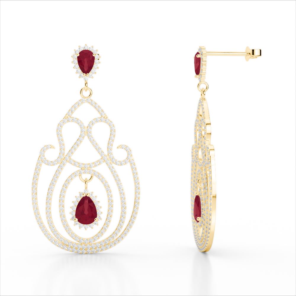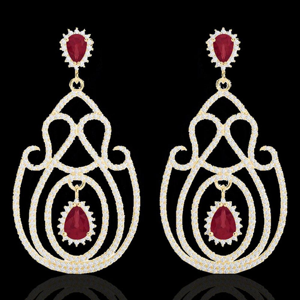 REF-381W8H - SKU: 22428 ---- 6.40 ctw Ruby & Micro Pave VS/SI Diamond Earrings 14k Yellow Gold