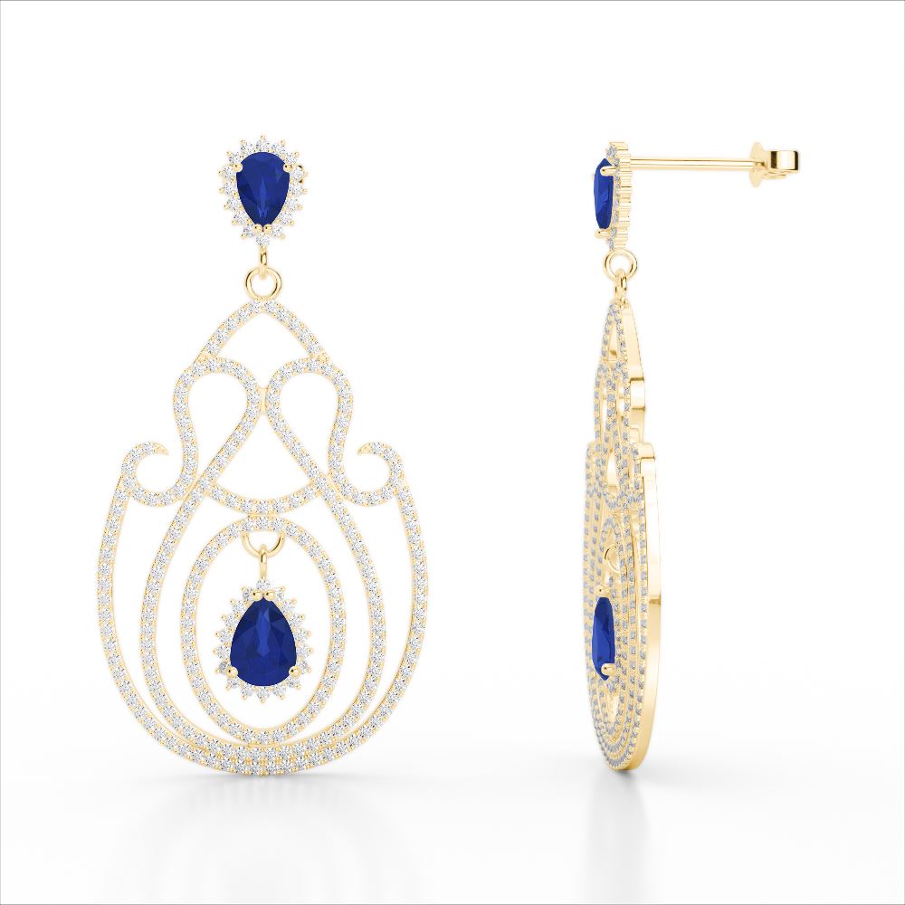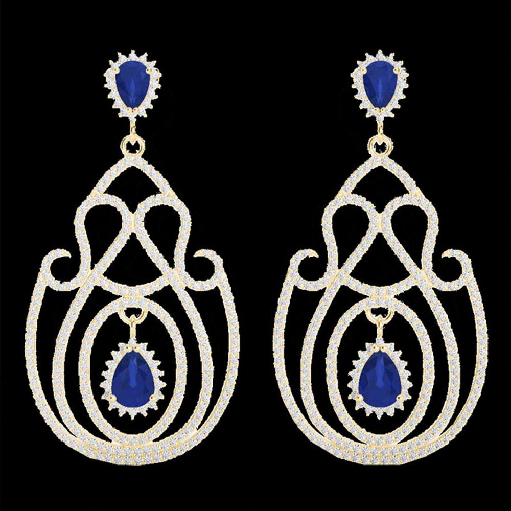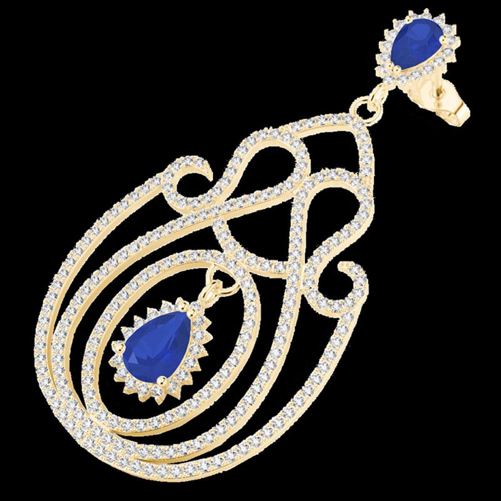 REF-381F8M - SKU: 22430 ---- 6.40 ctw Sapphire & Micro Pave VS/SI Diamond Earrings 14k Yellow Gold