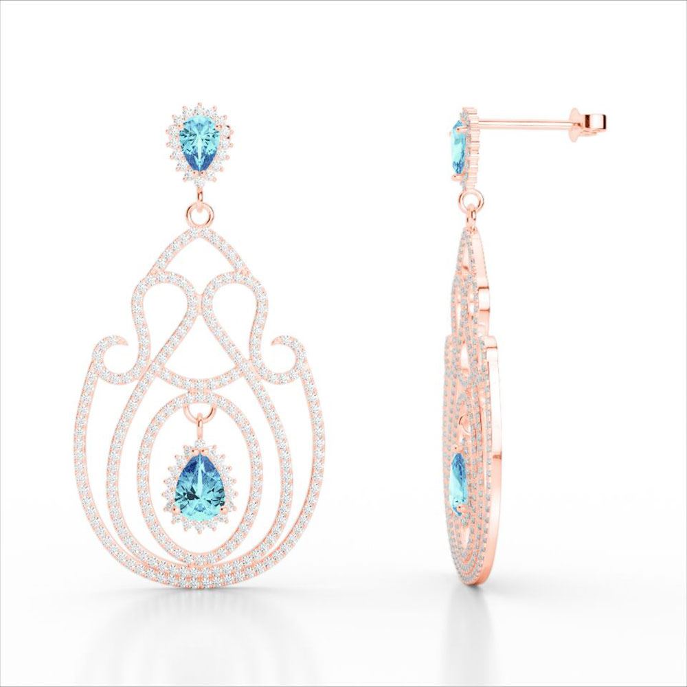 REF-381X8A - SKU: 22432 ---- 6.40 ctw TOPAZ & Micro Pave VS/SI Diamond Earrings 14k Rose Gold
