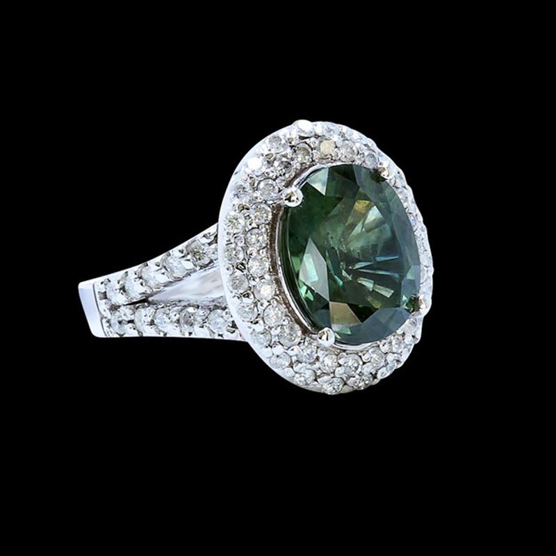 14K W/G NATURAL CEYLON GREEN SAPPHIRE RING :9.11GM /NATURAL SAPPHIRE /DIA :1.20CT/GREEN SAPPHIRE :6.04CT/#GVR1370