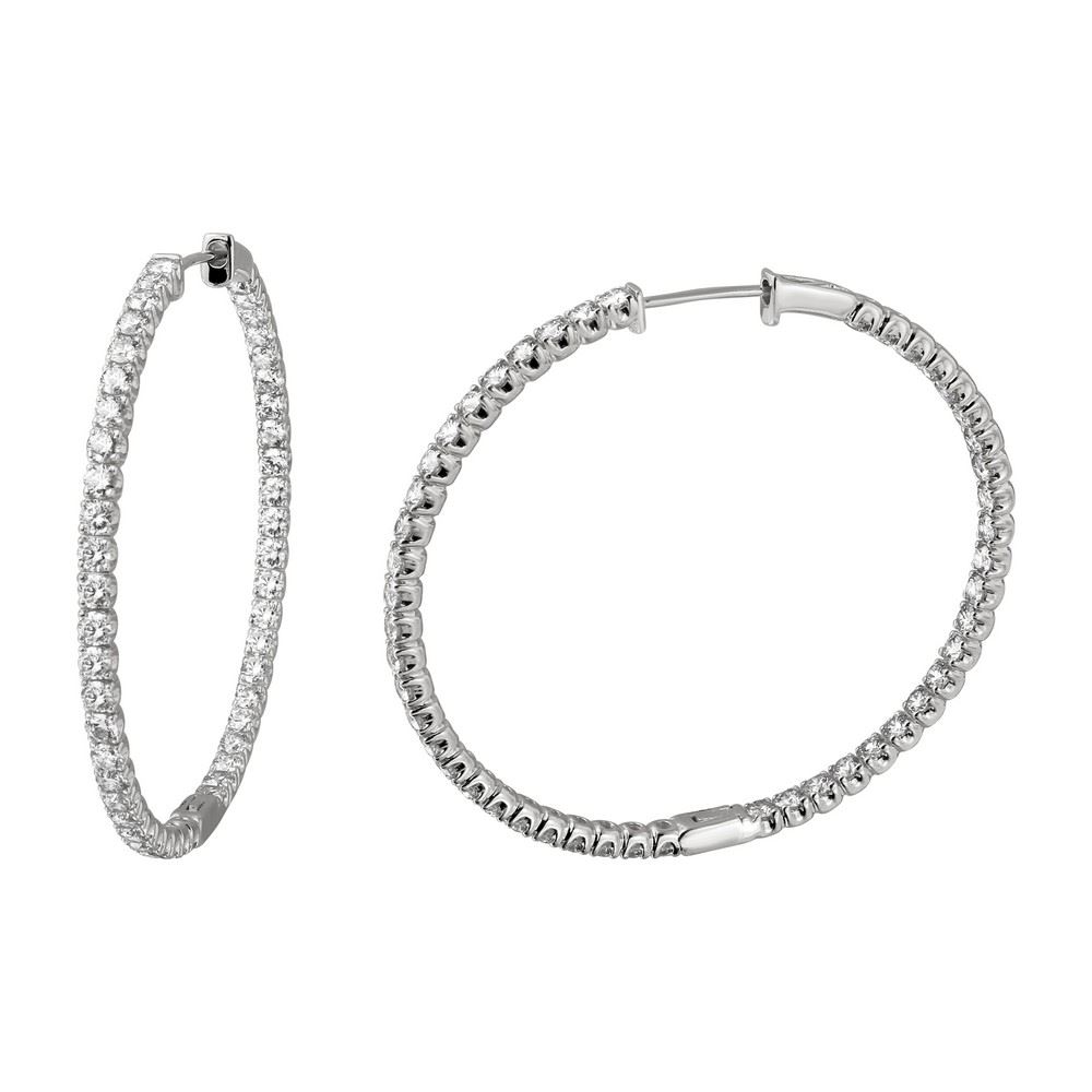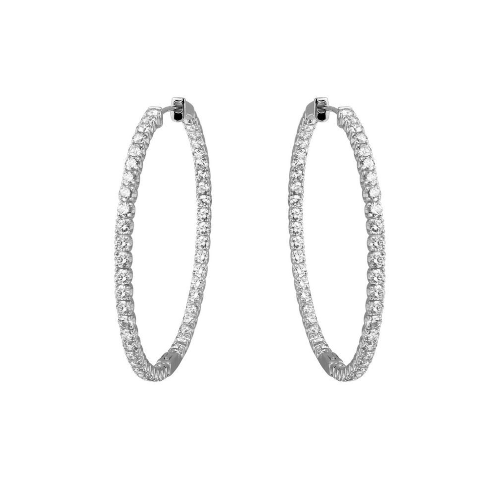REF-600K2M - SKU: JF380005 ---- 6.41 CTW White Round Diamond Hoop Earring 14K White Gold