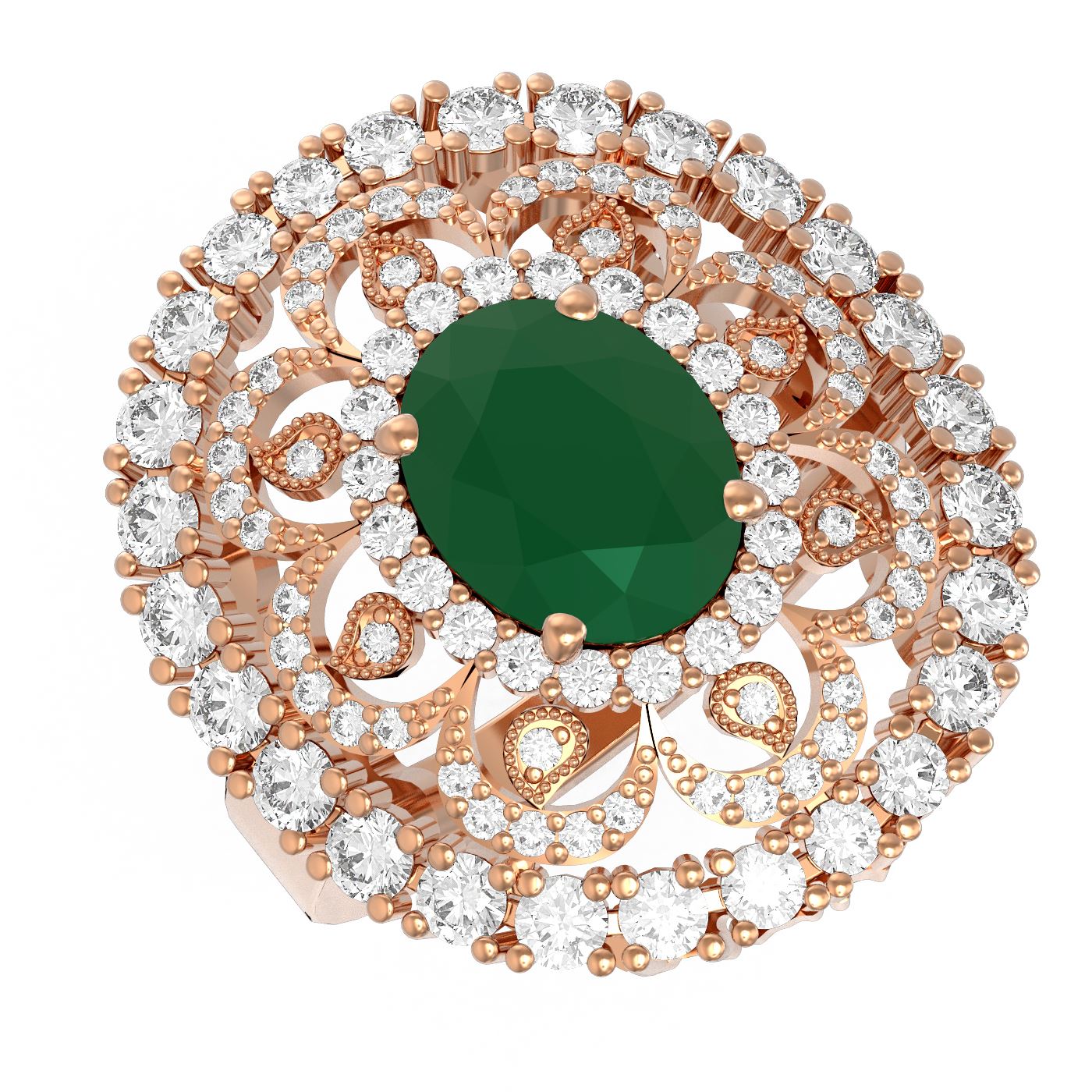 SKU: 53601 ---- 6.41 ctw Emerald & Diamond Ring 18K Rose Gold