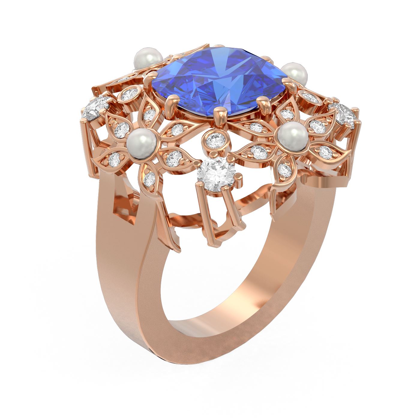 SKU: 53997 ---- 6.41 ctw Tanzanite & Diamond Ring 18K Rose Gold