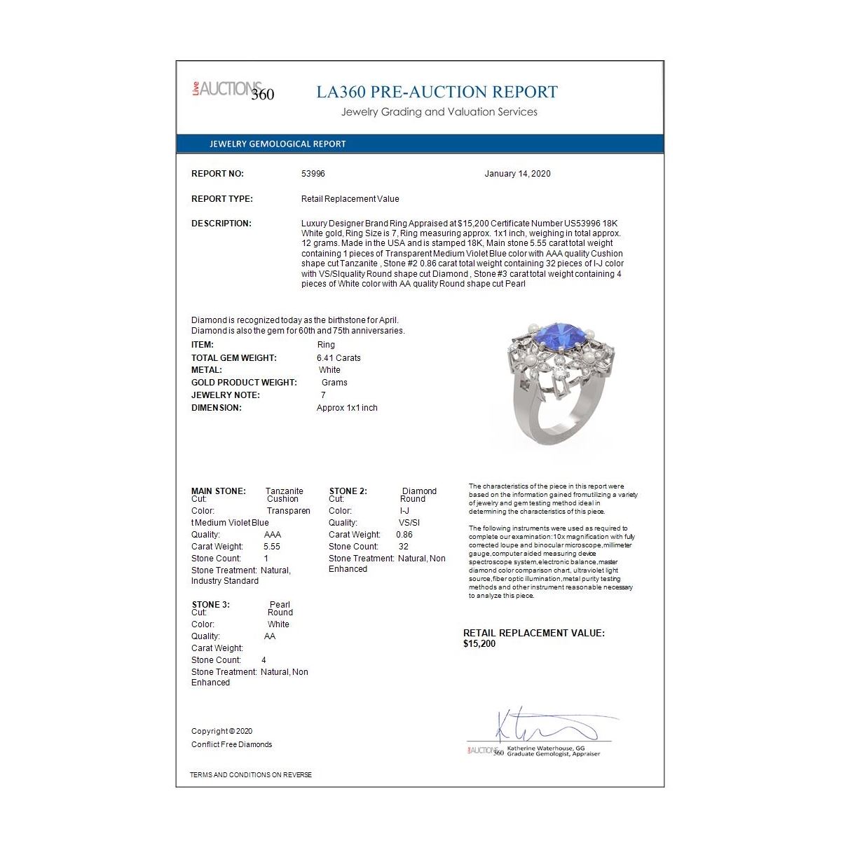 REF-345F5M - SKU: 53996 ---- 6.41 ctw Tanzanite & Diamond Ring 18K White Gold