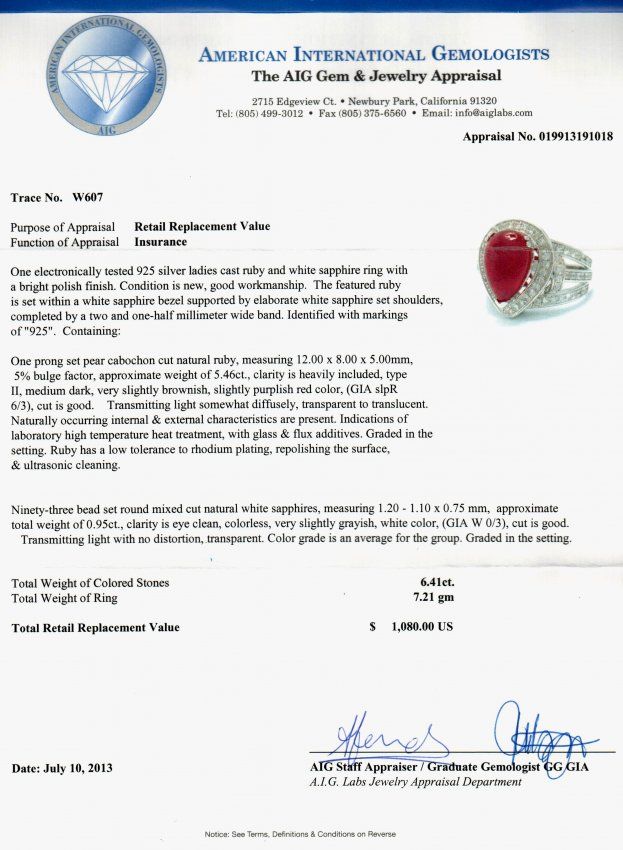 Regarding Appraised Jewelry and Loose Stones - Windsor Auction sends them out to a third party for Retail Replacement Value Appraisals, which are the most common. These types of evaluations are written for insurance needs. This would be the cost to replace the jewelry with an item of equal quality and kind, considered to be the current market price or the replacement value. This type of appraisal is done to protect you in the event of damage or loss of a valuable item. Our appraisals are conducted by independent 3rd Party appraisal firms that utilizes Certified GIA Gemologist. Appraisals should be used for verification of gemstone and/or metal weight, size, and grade only, not actual value. Appraisal value should be considered for insurance purposes only, not actual value, as price varies greatly from retail locations thru out the world. Items should not be purchased with the expectation to resell for appraisal price, or for profit.