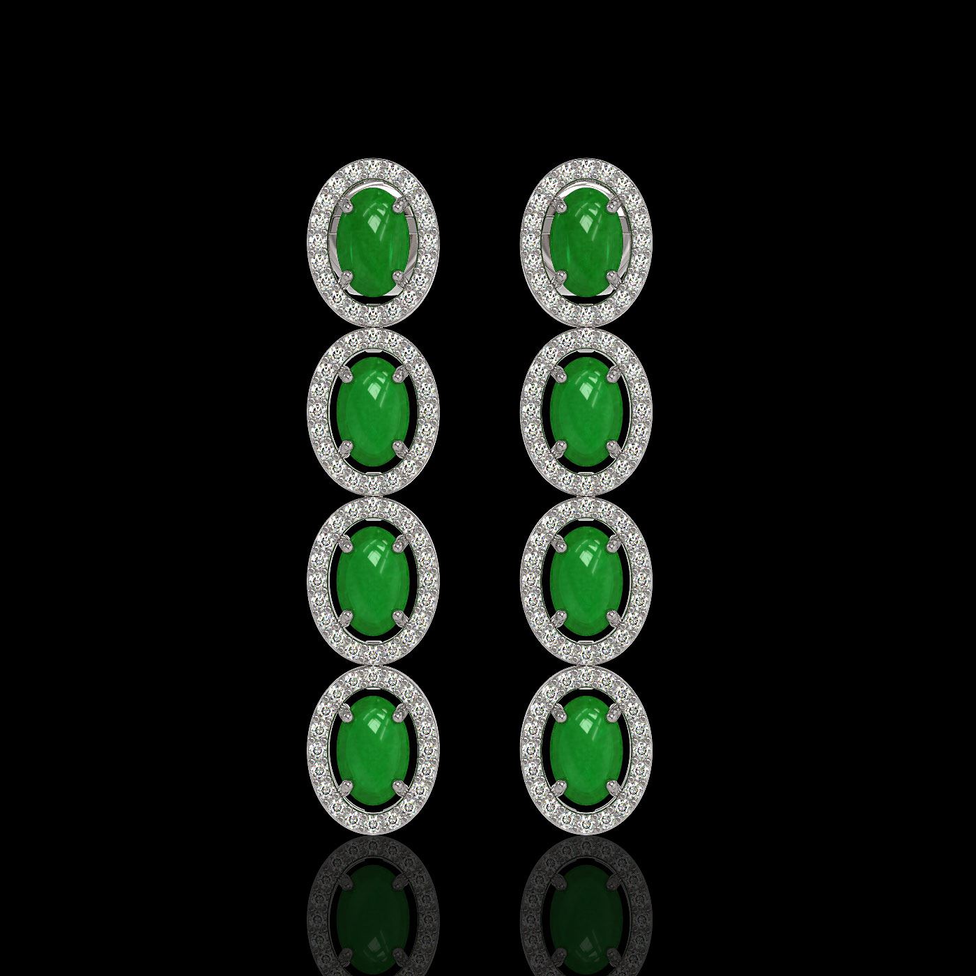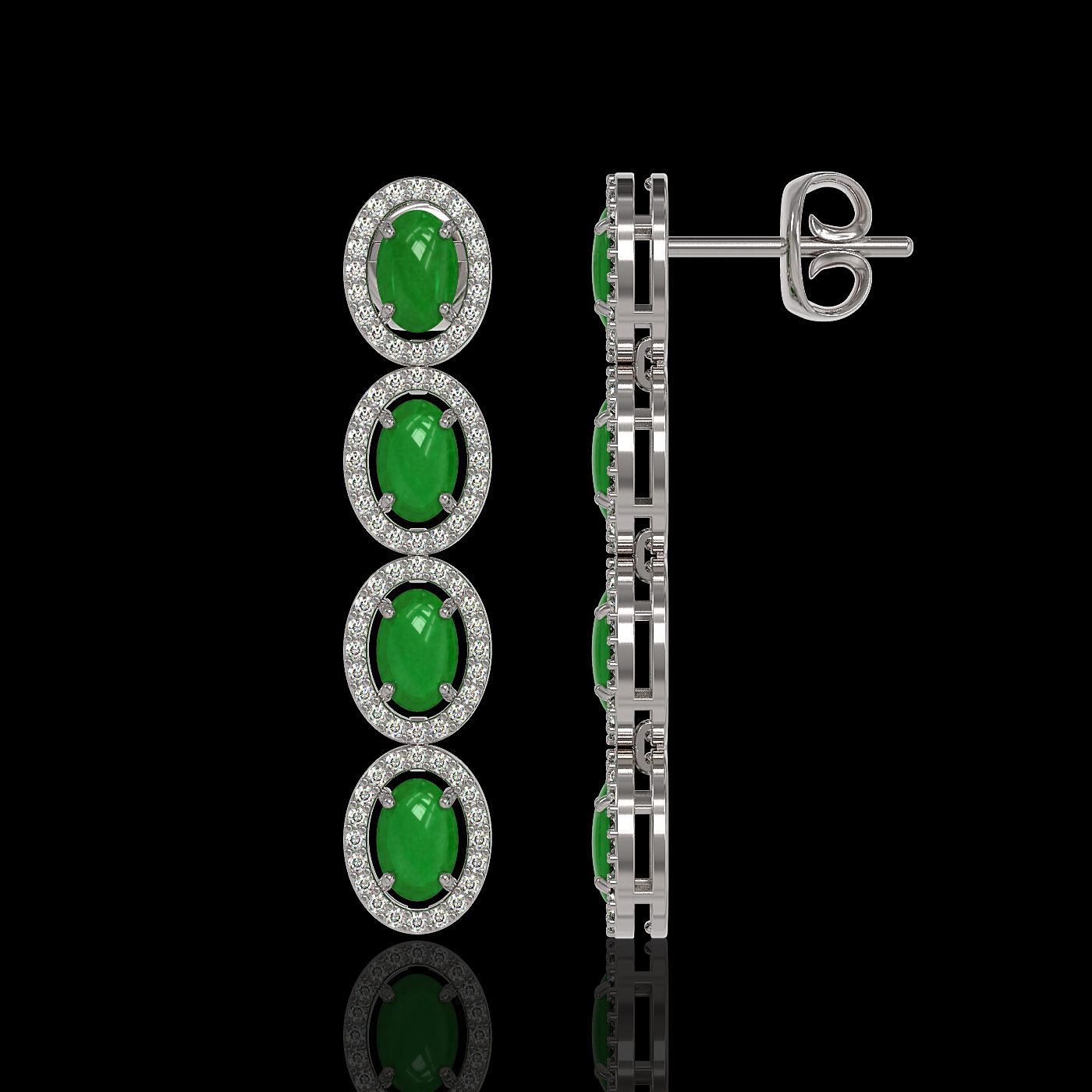 REF-103N6F - SKU: 46007 ---- 6.44 ctw Jade & Diamond Micro Pave Halo Earrings 10k White Gold
