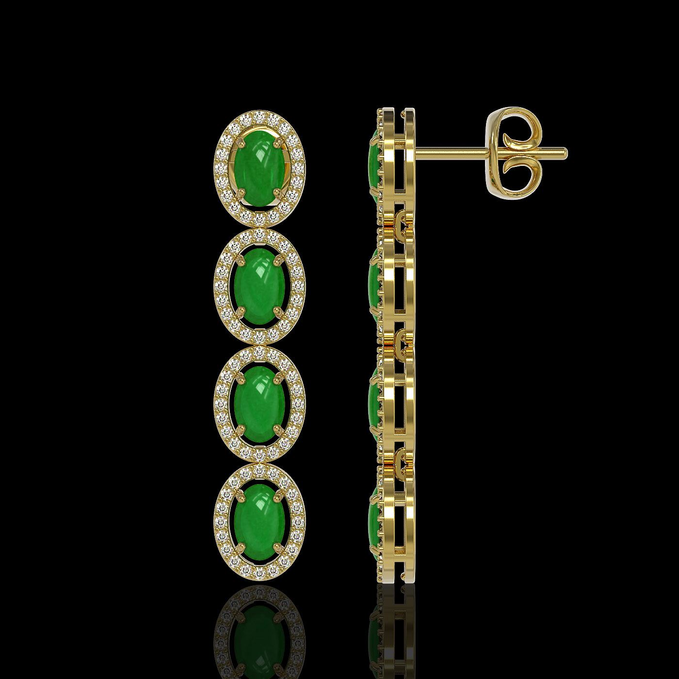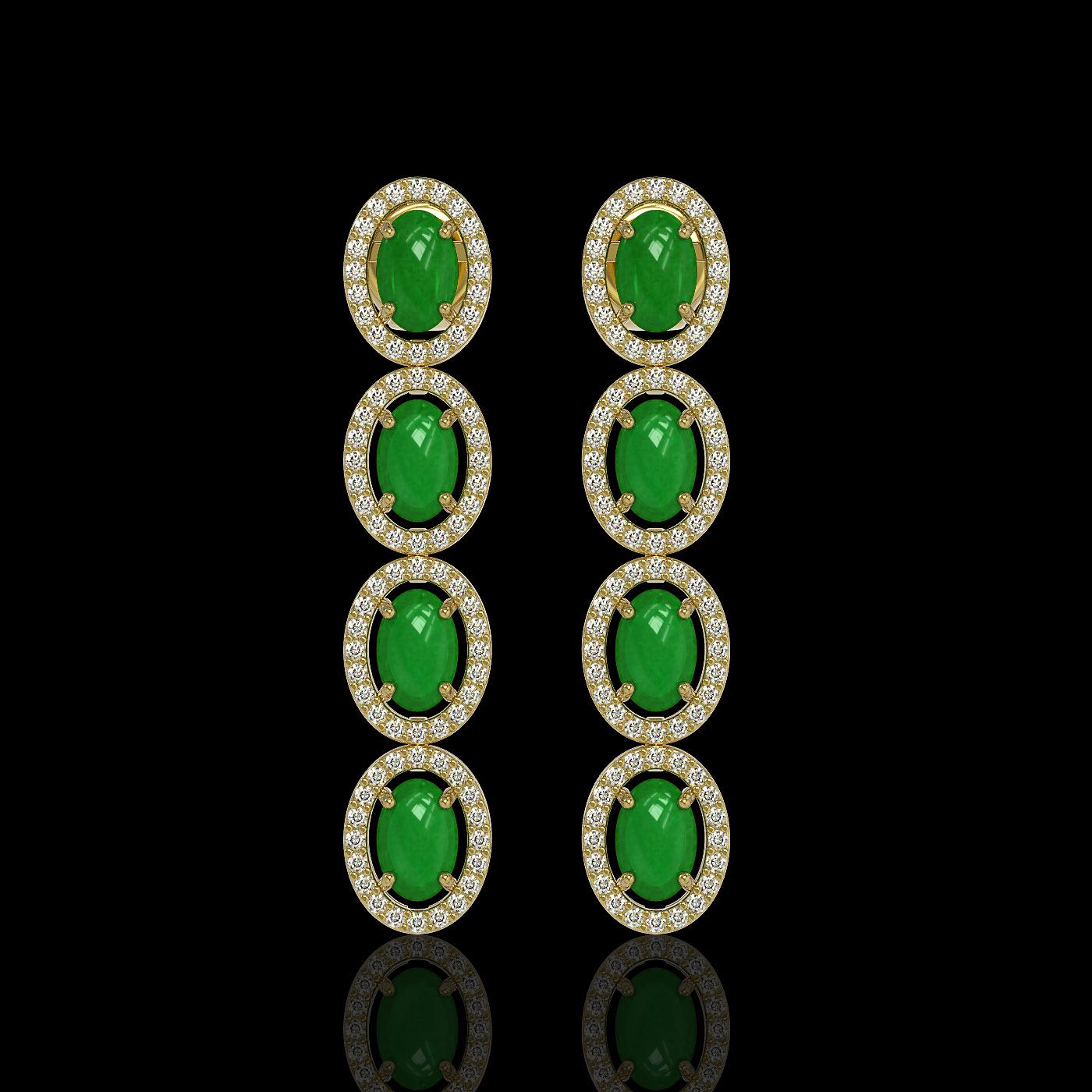 REF-103W6H - SKU: 46009 ---- 6.44 ctw Jade & Diamond Micro Pave Halo Earrings 10k Yellow Gold