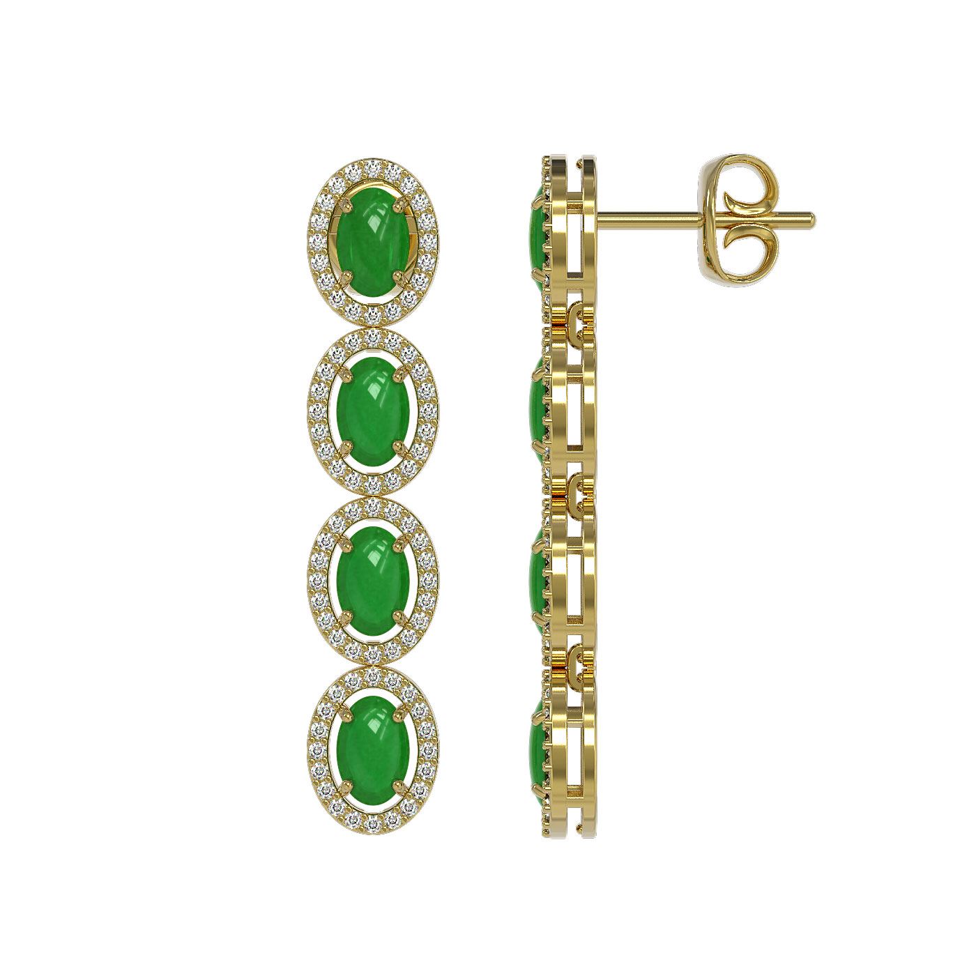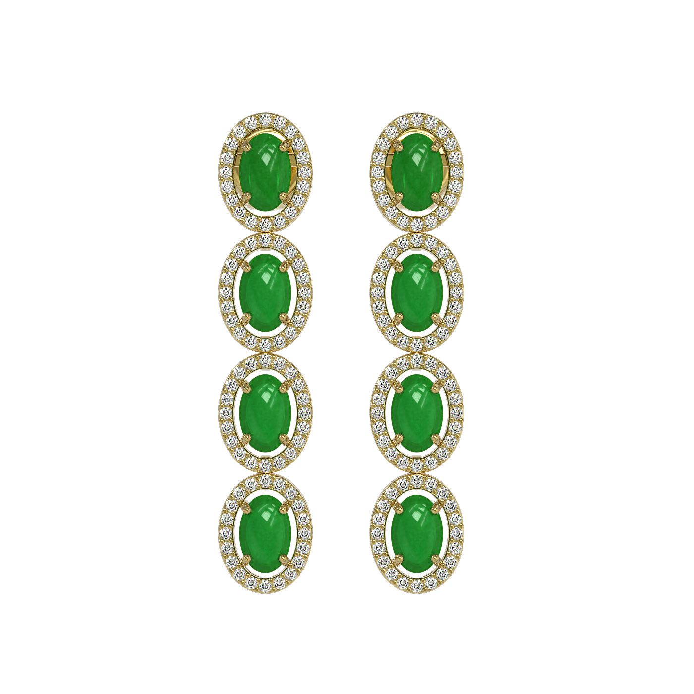 SKU: 46009 ---- 6.44 ctw Jade & Diamond Micro Pave Halo Earrings 10k Yellow Gold