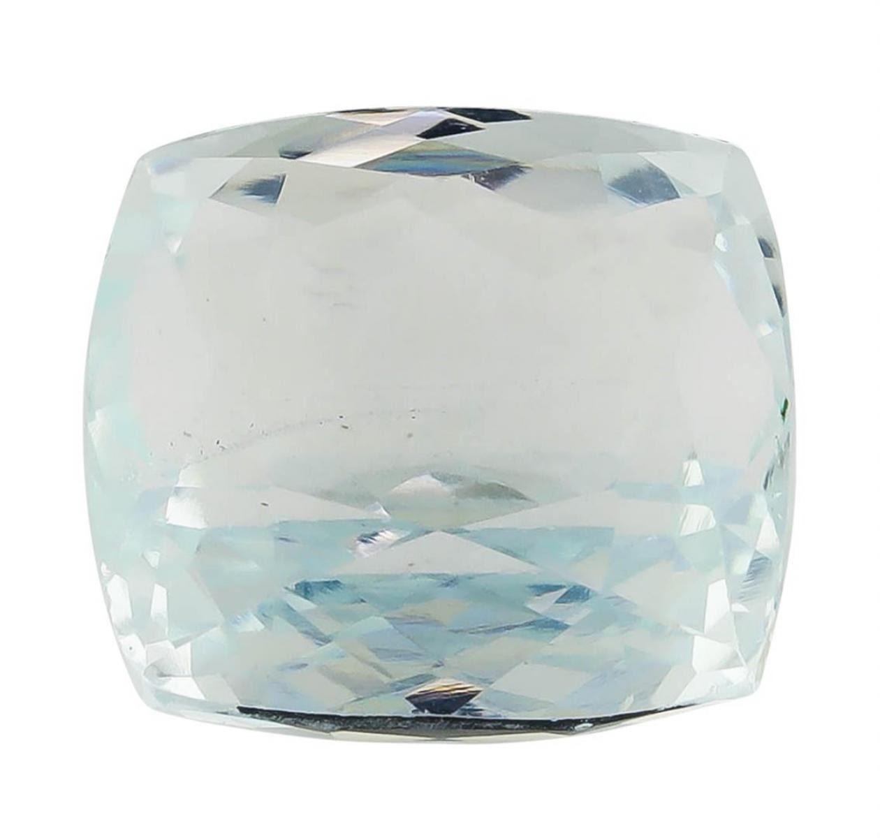 One natural rectangle cushion cut aquamarine with an exact weight of 6.45ct., clarity is slightly included, slightly grayish greenish blue. Gemological Appraisals Services estimates the retail value at $2257.5 GAS Appraised.