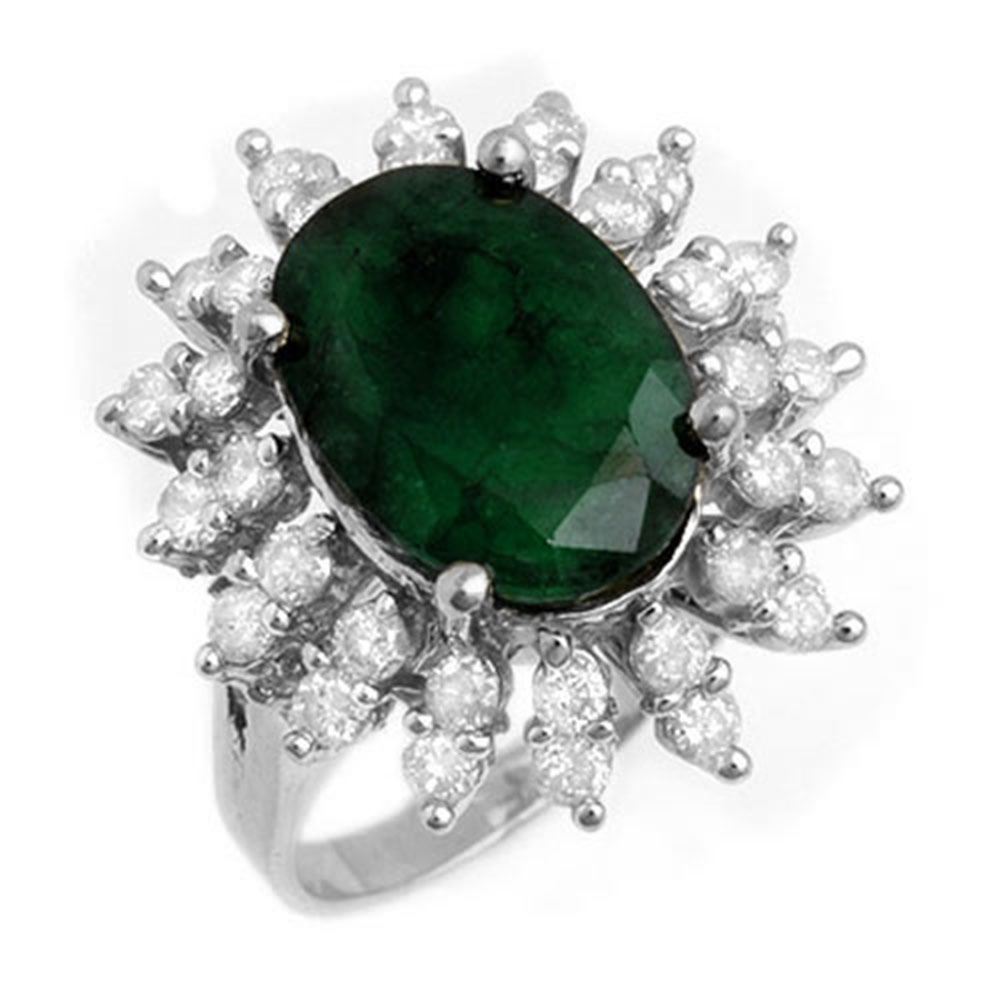 REF-132H9R - SKU: 13289 ---- 6.45 ctw Emerald & Diamond Ring 18k White Gold