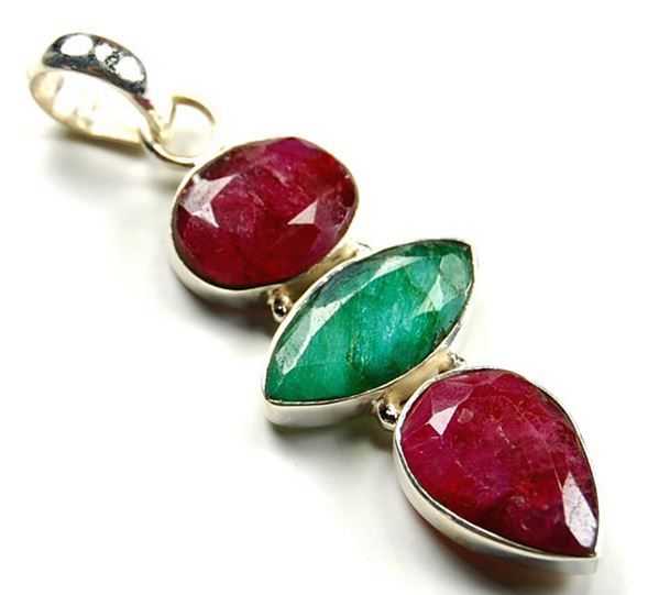 6.450g Pendant of Emerald and Ruby Sterling Silver