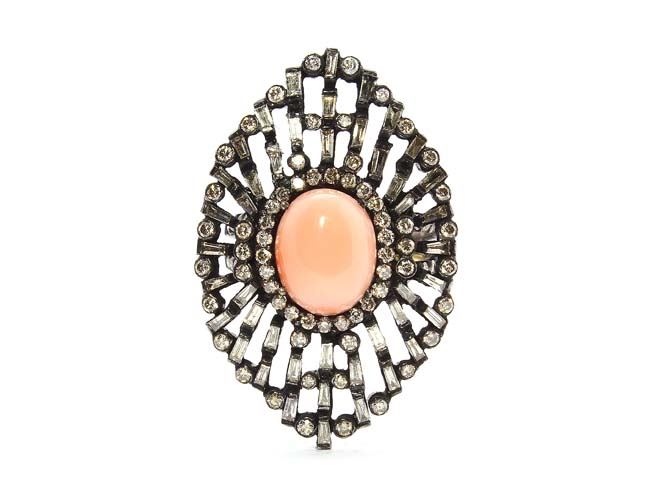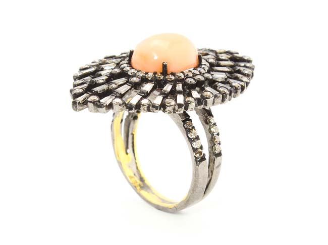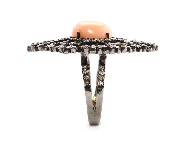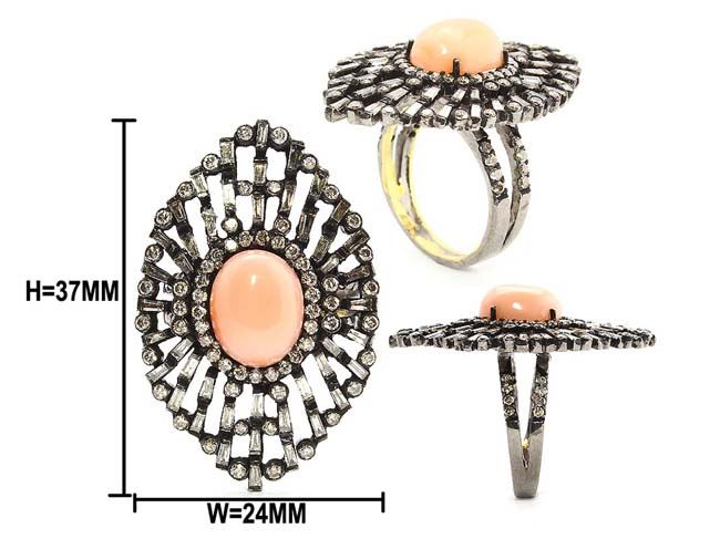 CORAL AND DIAMOND RING/Diamond Count 1:/Diamond Total Carat :1.82/Diamond Color & Clarity:J-L/I1-I2 Single Cut /Diamond Count 2:/Diamond 2 CTW:/Diamond Count 3:/Gemstone Count 1:1/Gemstone CTW:4.64/Gemstone Dimension:/Gemstone Shape:Oval Coral /Gemstone Count 2:/Gemstone Shape:/Ring Dimension:37x24mm/Metal Type 1:18kYellow Gold:Gram Weight:0.85/Metal Type 2:over0.925Sterling Silver / Weight Gram:6.88/Gross Weight :9.02/Ring Size:7