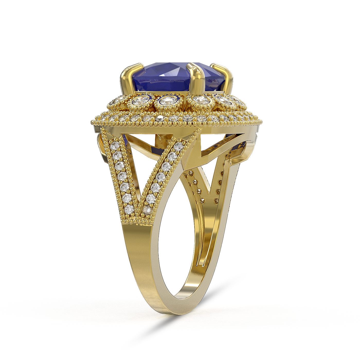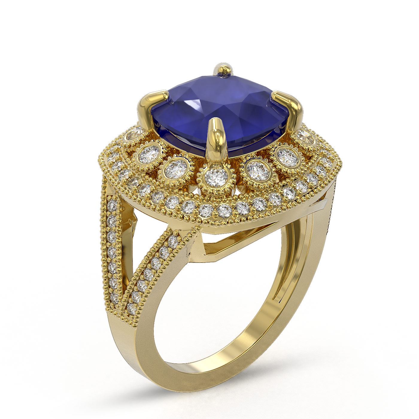 REF-158A2N - SKU: 43936 ---- 6.47 ctw Certified Sapphire & Diamond Victorian Ring 14K Yellow Gold