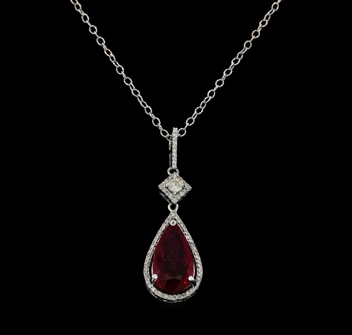 One Pendant with Chain including: 14KT White Gold containing Ruby with a total weight of 6.47 ct. and Diamonds with a total weight of 0.53 ctw.