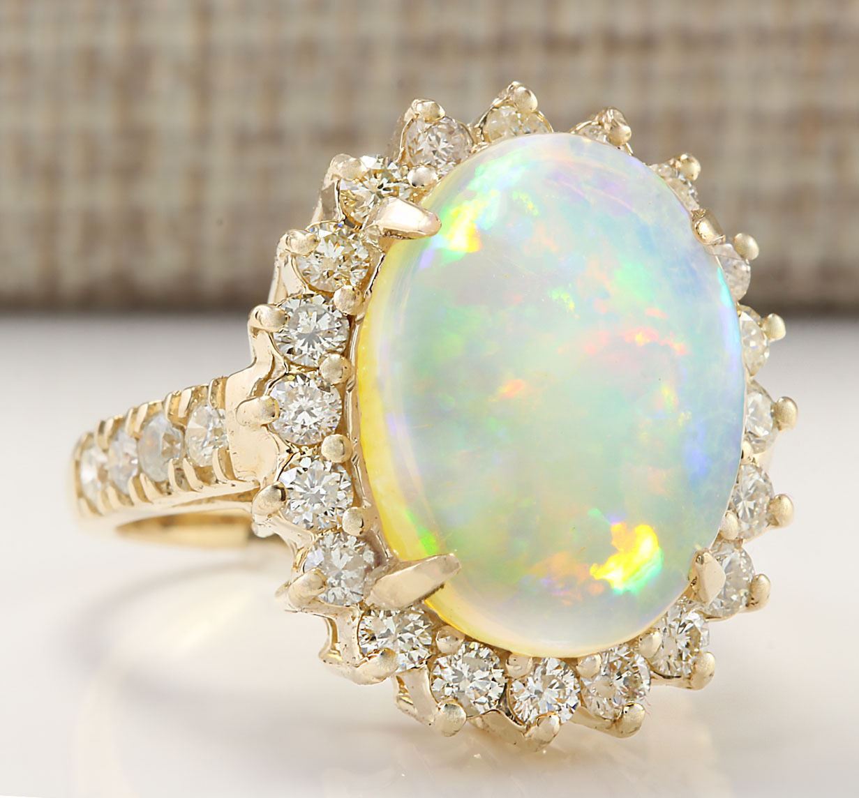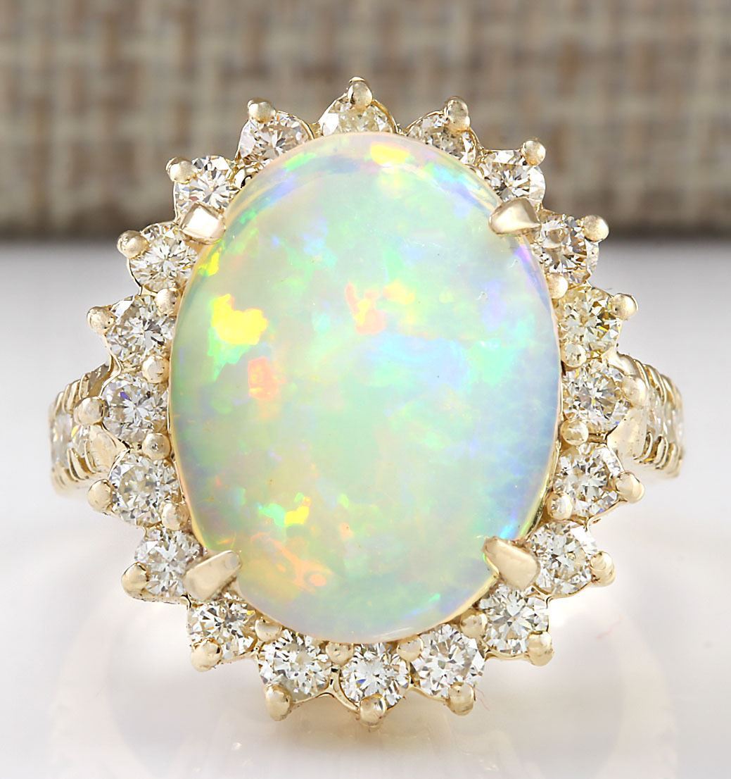 6.48 CTW Natural Opal And Diamond Ring In 18K Yellow Gold