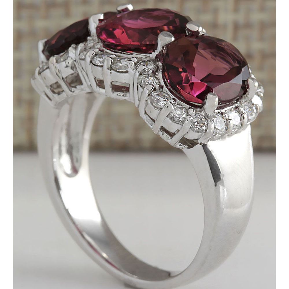 6.48 CTW Natural Pink Tourmaline And Diamond Ring 14K Solid White Gold