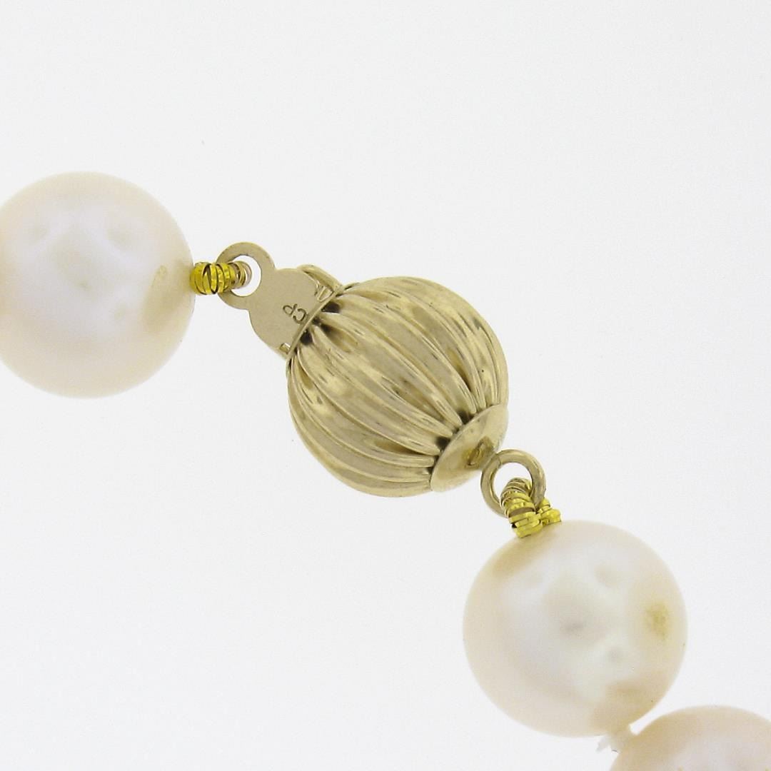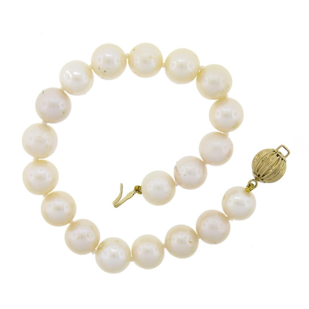 6.5" 14k Gold Grooved Ball Hook Push Clasp 8-8.5mm Cultured Pearl Bracelet