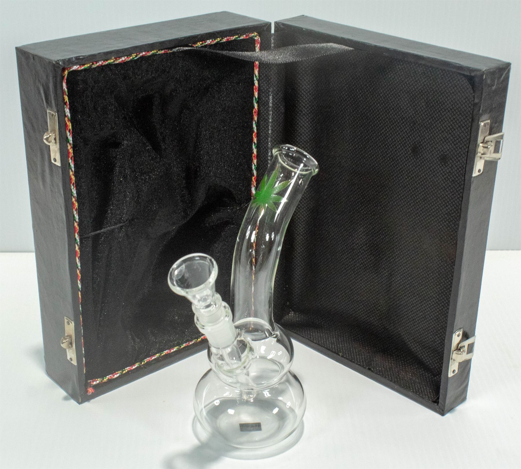 6.5  Curved Tube Round Base Mini Leaf Bong with Bowl & Case