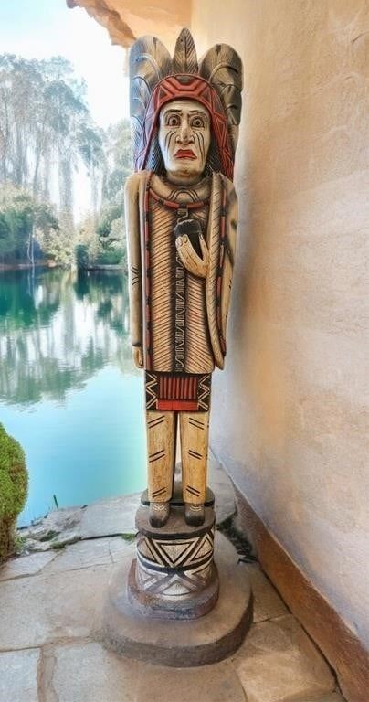 Native American 6.5 foot tall cigar shop wooden statue.