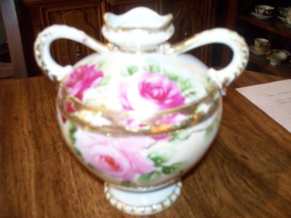 6.5" NIPPON VASE, 2 HANDLE, ROSES W/GOLD TRIM
