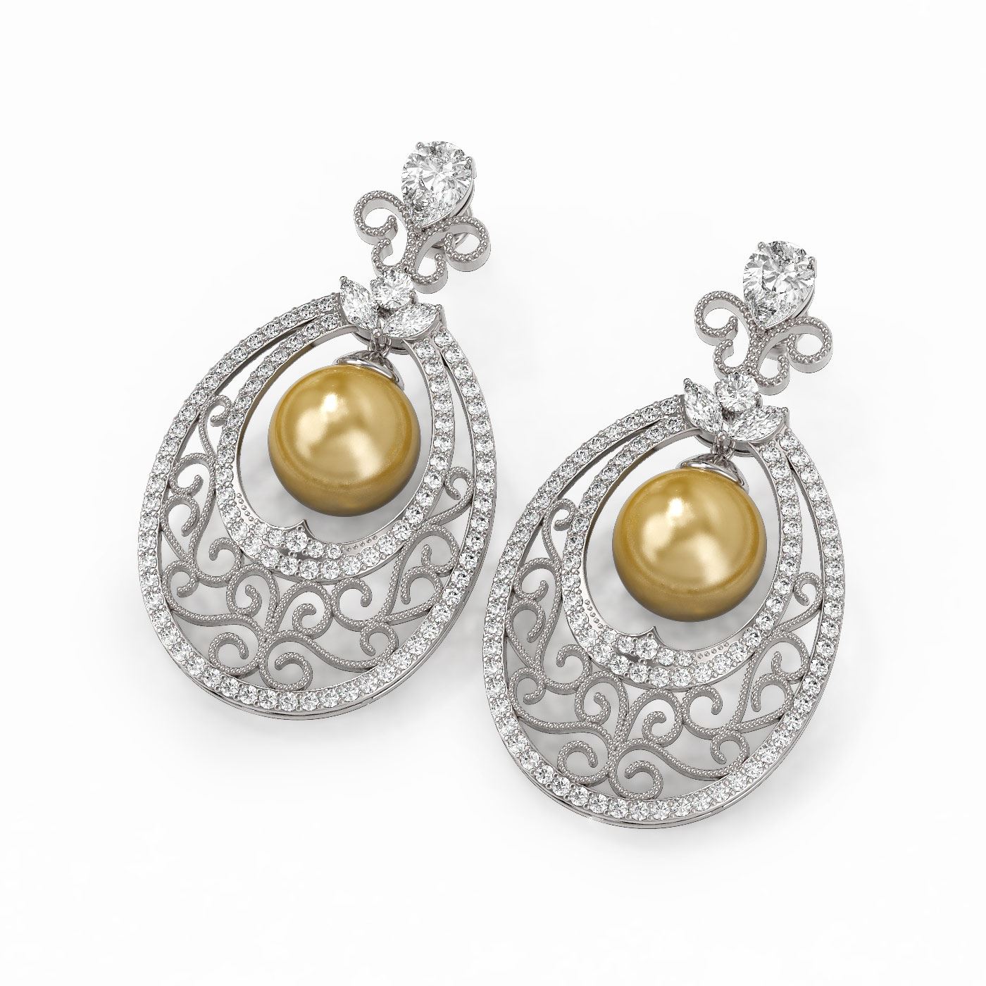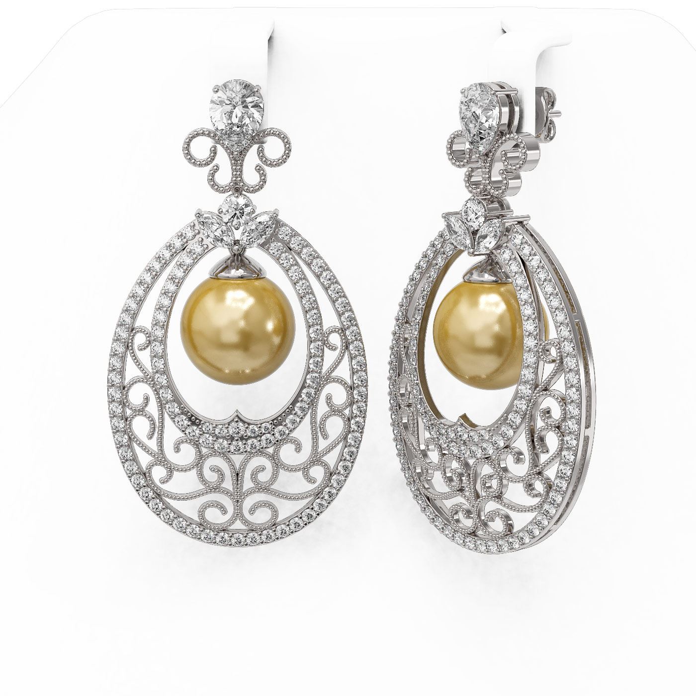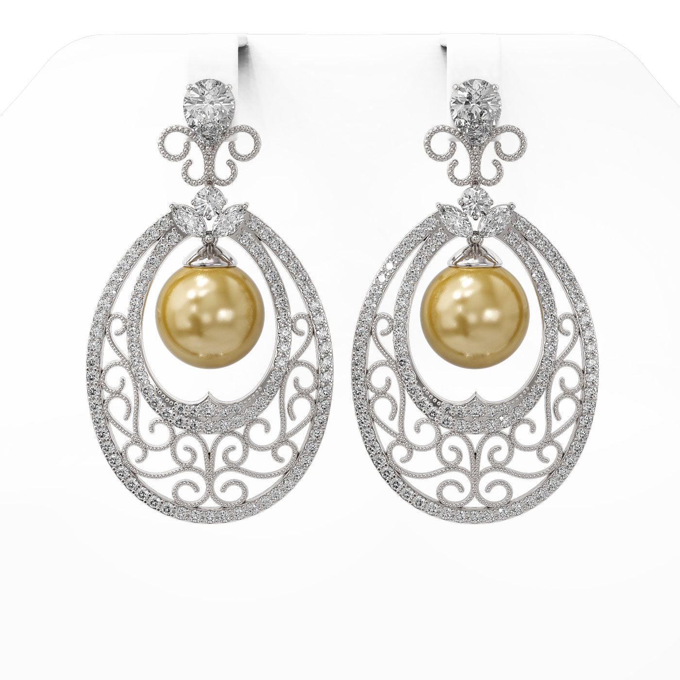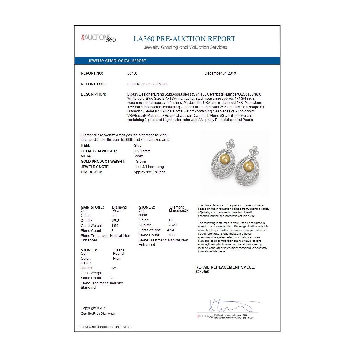 REF-783G3W - SKU: 50430 ---- 6.5 ctw Mixed Cut Diamond with Pearl Earrings 18K White Gold