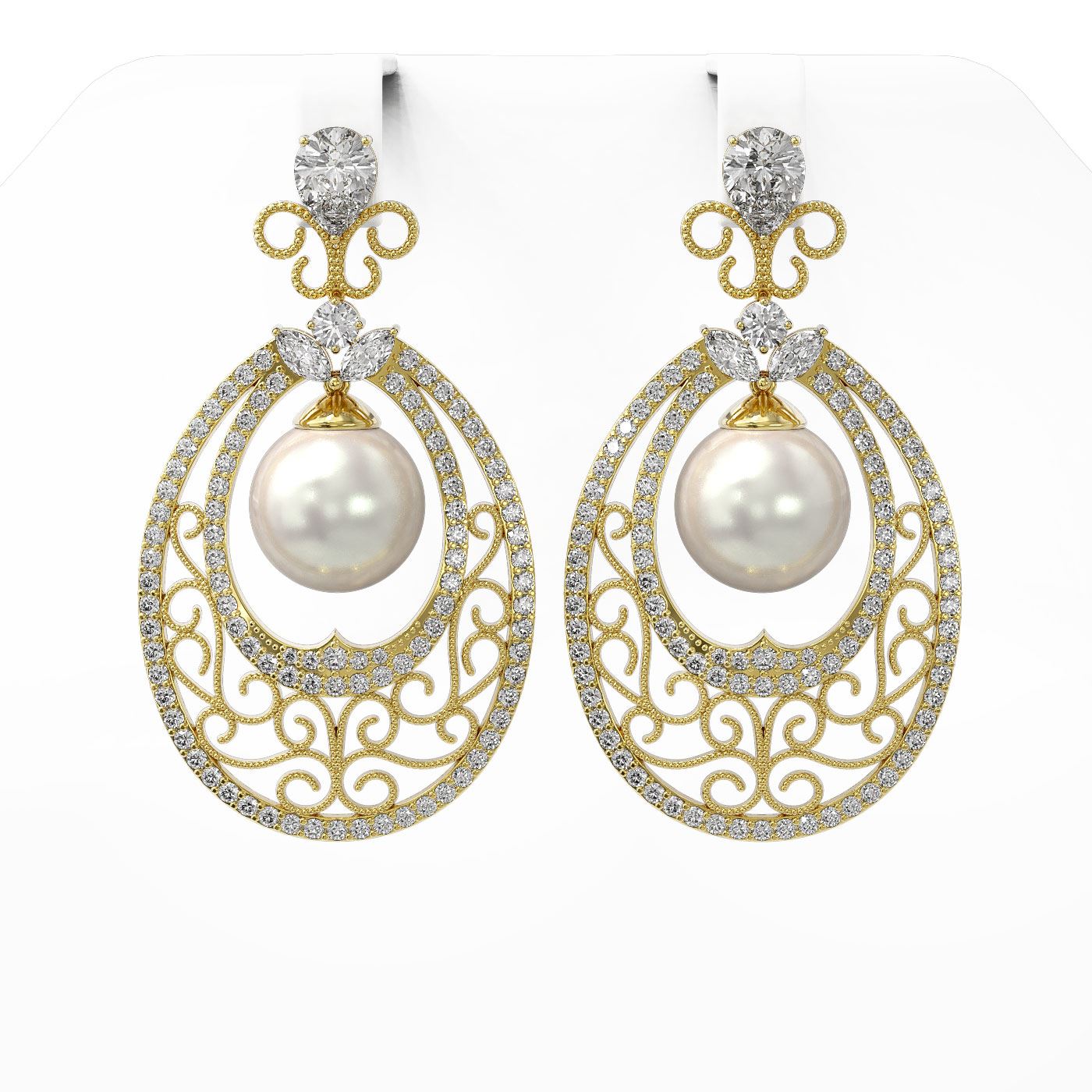 SKU: 50414 ---- 6.5 ctw Mixed Cut Diamond with Pearl Earrings 18K Yellow Gold