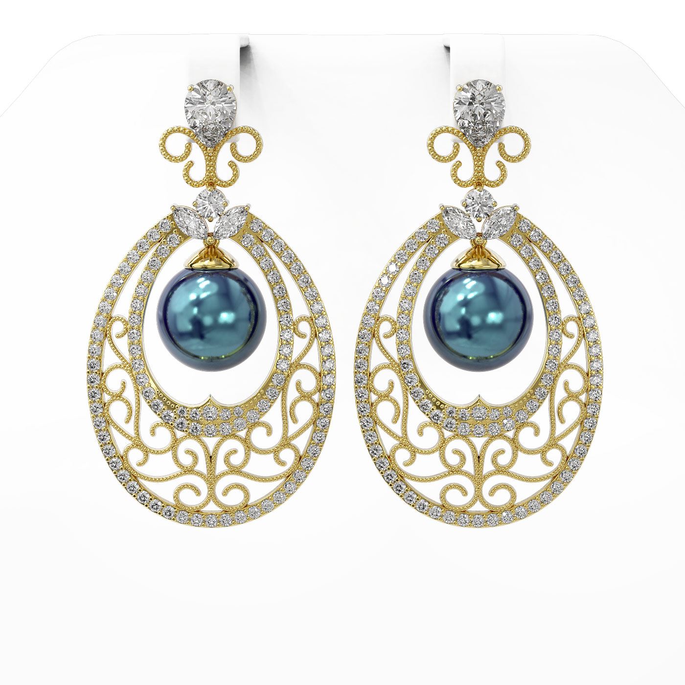 SKU: 50423 ---- 6.5 ctw Mixed Cut Diamond with Pearl Earrings 18K Yellow Gold