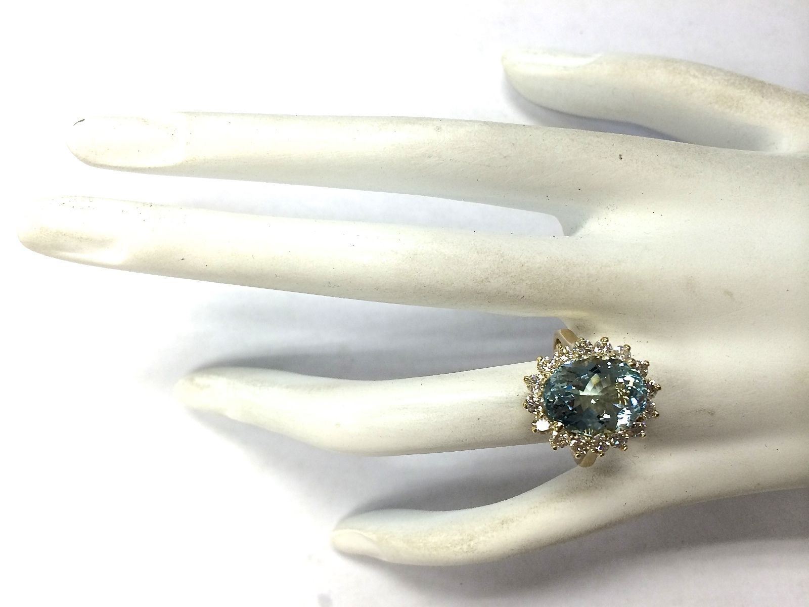 6.50 CTW Natural Aquamarine And Diamond Ring 18K Solid Yellow Gold