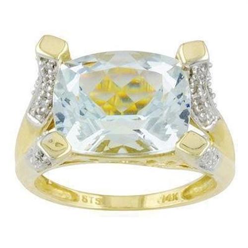 This is a aquamarine and diamond ring set in 14kt yellow gold. this ring is a sizable 6. There is .16ct of diamond.