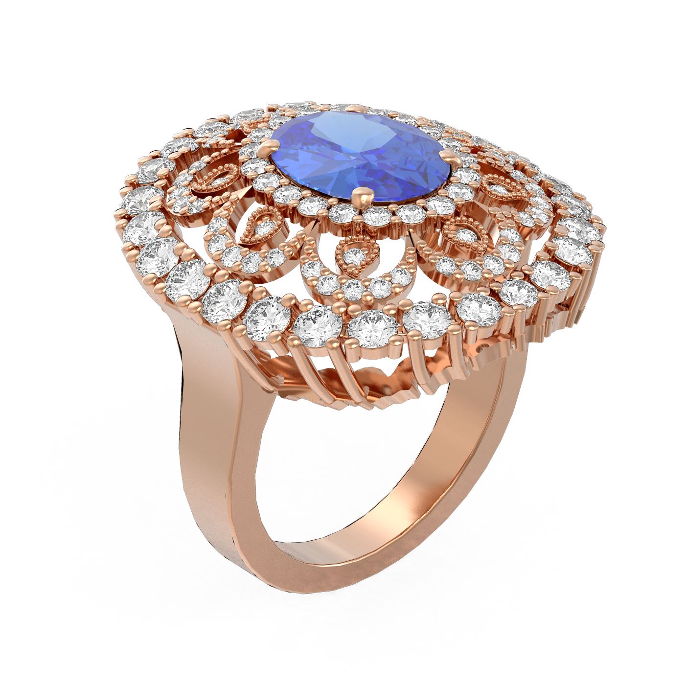 SKU: 53616 ---- 6.51 ctw Tanzanite & Diamond Ring 18K Rose Gold