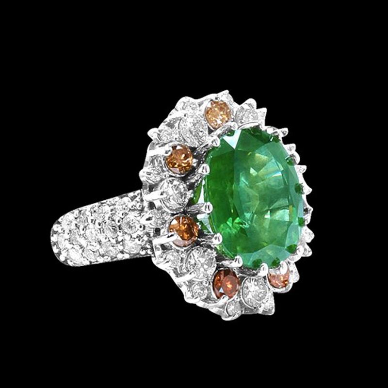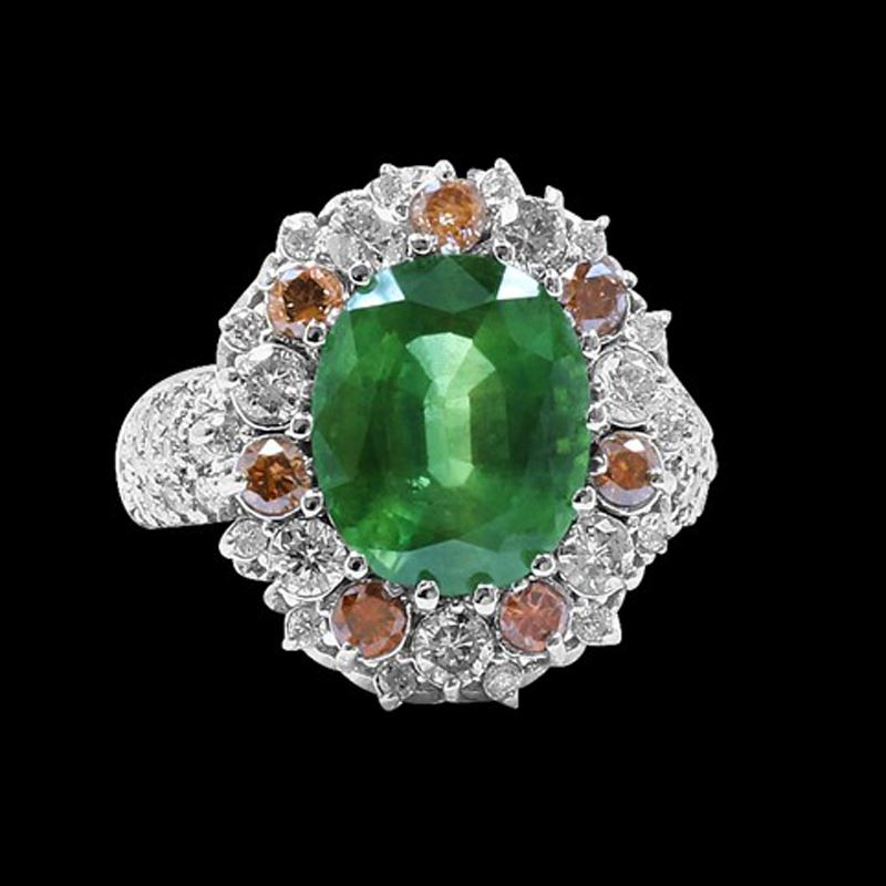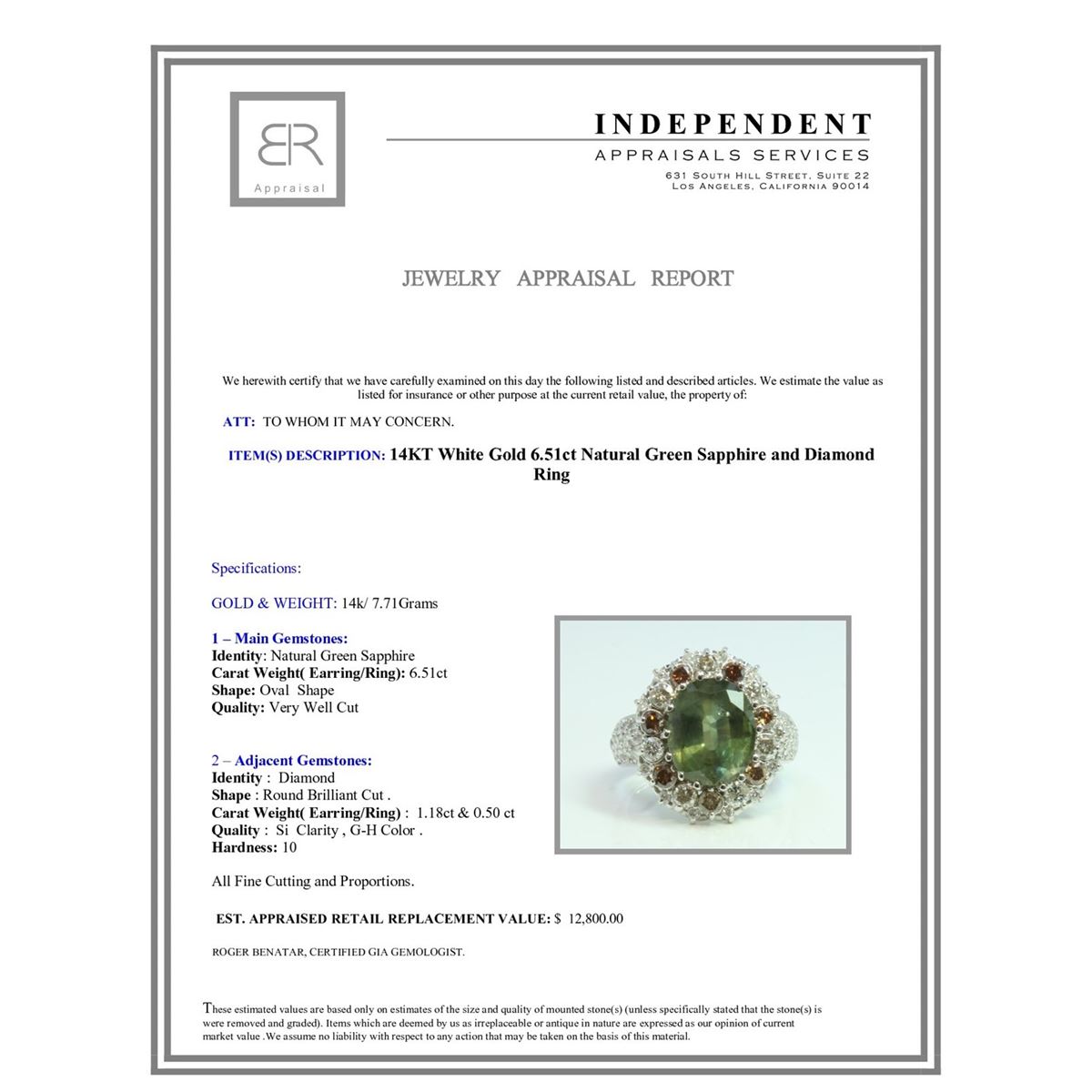 14K WHITE GOLD NATURAL CEYLON GREEN SAPPHIRE RING:7.71 GRAMS/DIAMOND:0.50CT/WHITE DIAMOND:0.50CT/GREEN SAPPHIRE:6.51CT/#GVR1098