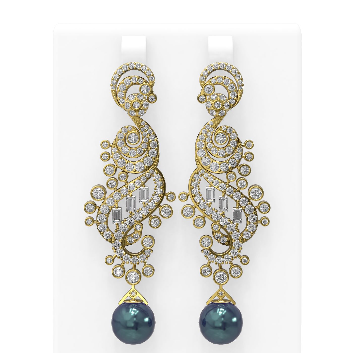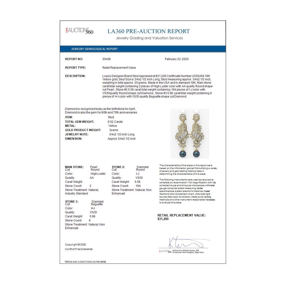 REF-630F5M - SKU: 55459 ---- 6.52 ctw Diamond & Pearl Earrings 18K Yellow Gold
