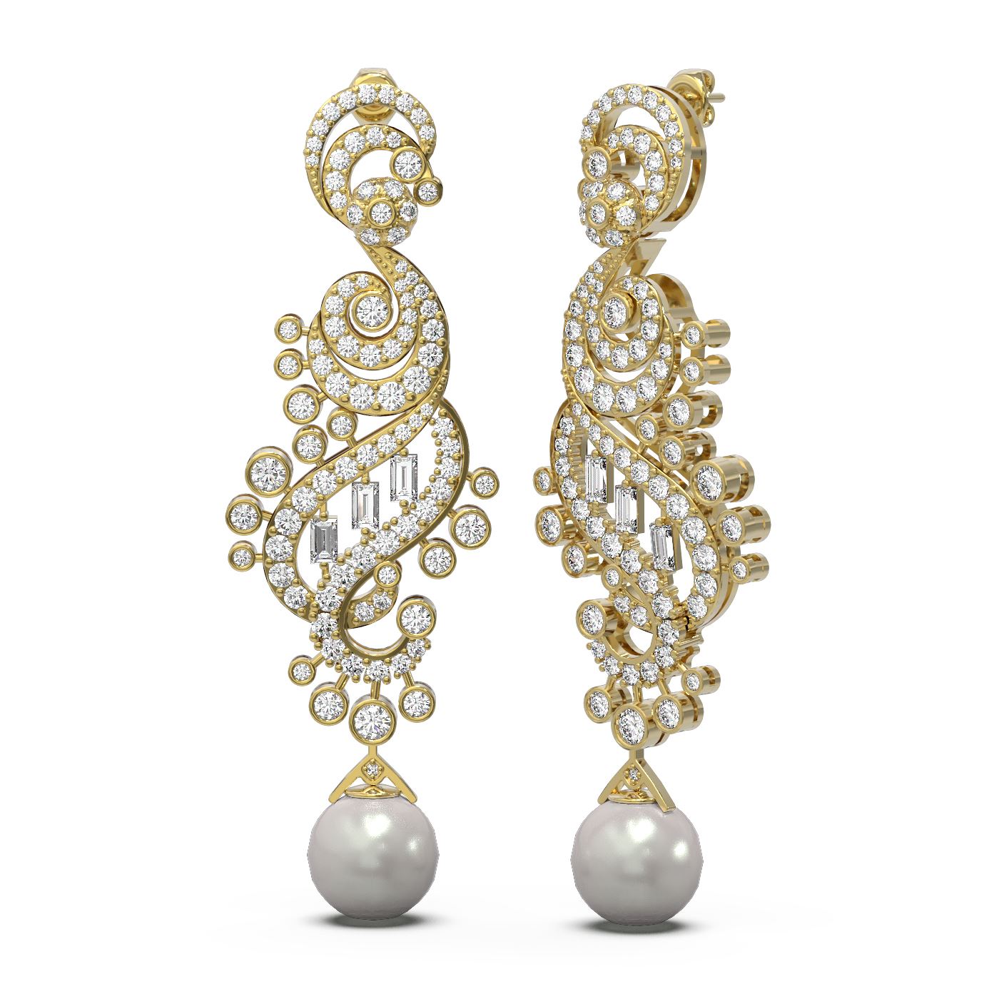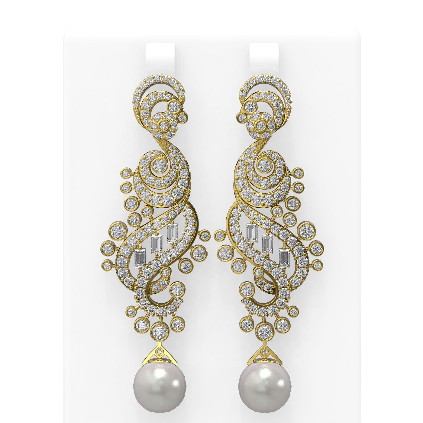 SKU: 55462 ---- 6.52 ctw Diamond & Pearl Earrings 18K Yellow Gold