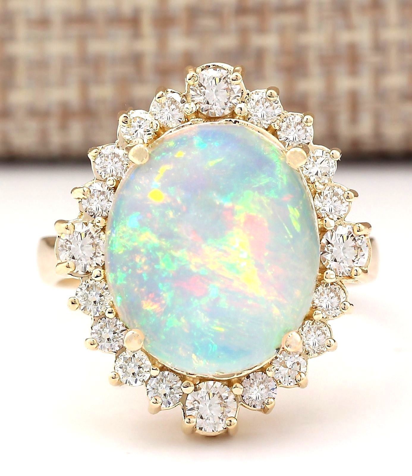 6.53 CTW Natural Opal And Diamond Ring In 14k Yellow Gold