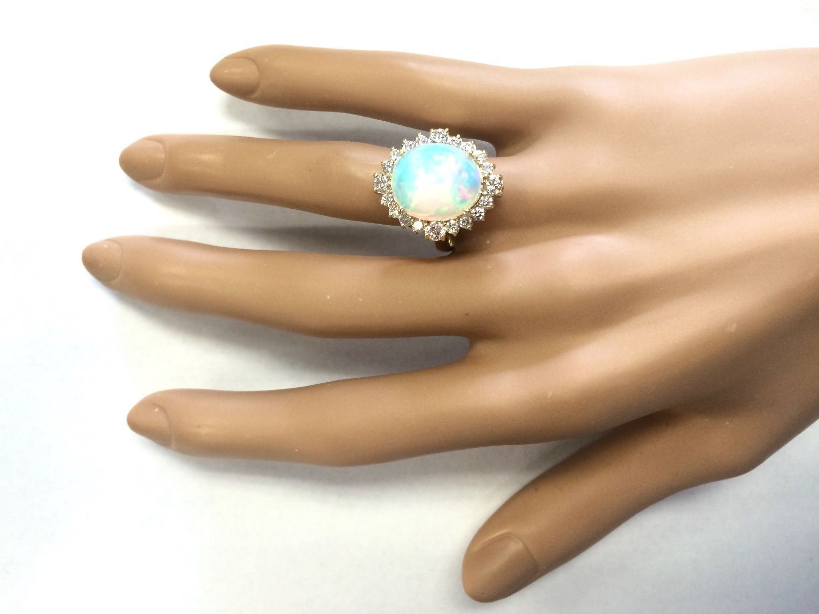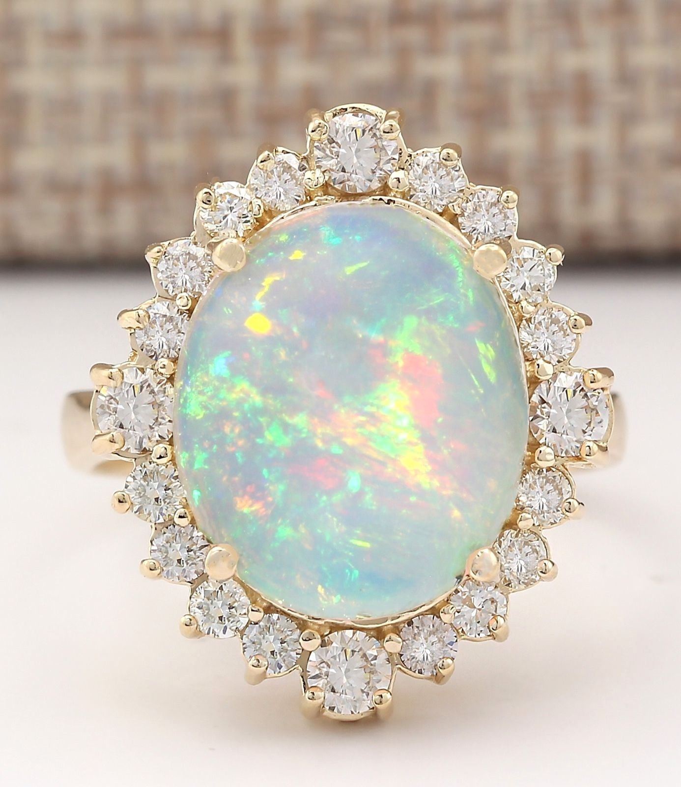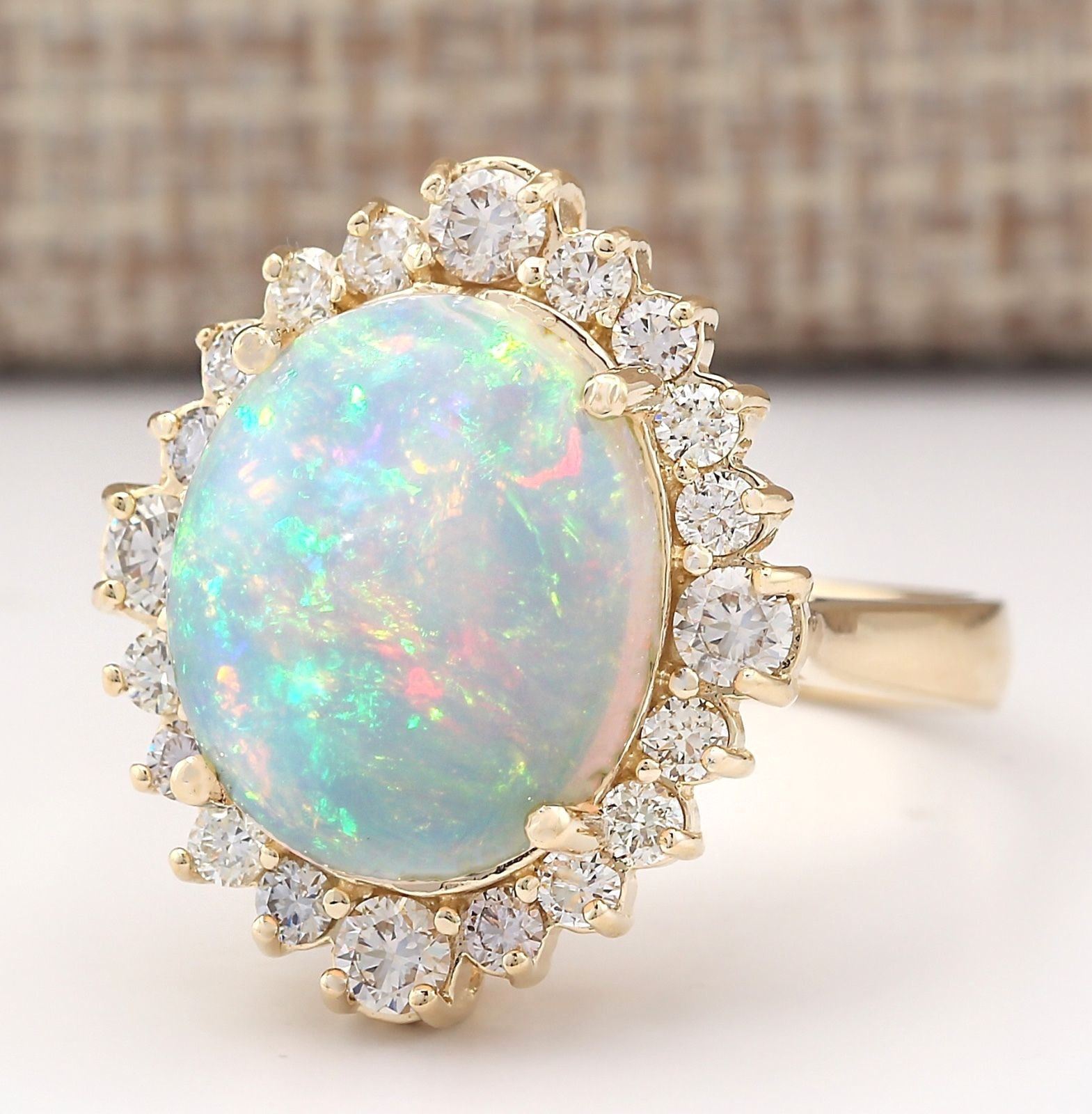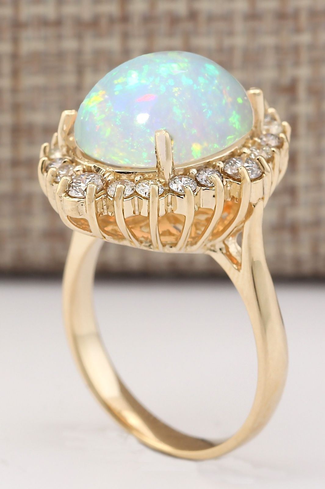 6.53 CTW Natural Opal And Diamond Ring In 18K Yellow Gold