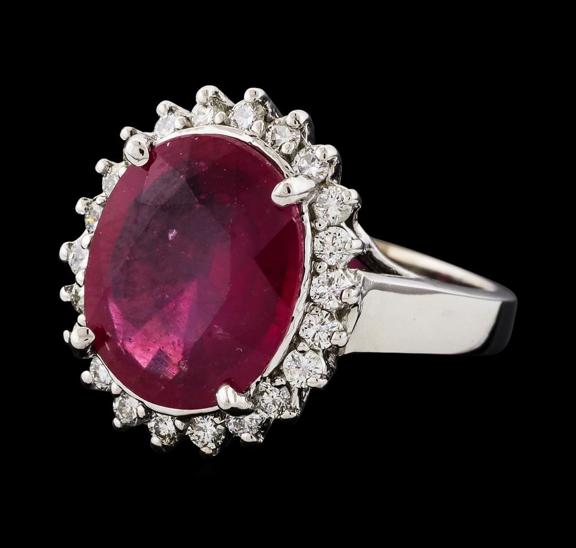 One Ruby and Diamond Ring featuring: 14KT White Gold with a total weight of 5.55 grams, Ruby with a total weight of 6.53ct, and 16 Diamonds with a total weight of 0.88ctw.