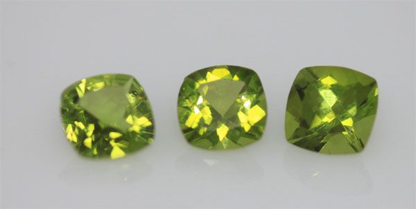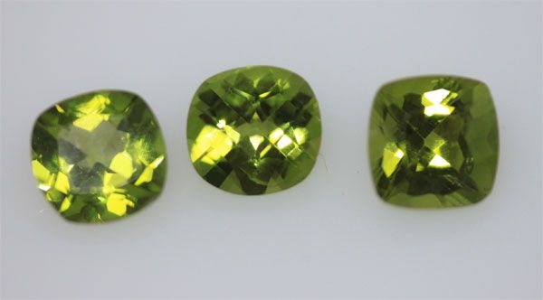 6.55 CTW PERIDOT CUSHION 8X8MM (3) **|**|** 6.55 CTW PERIDOT CUSHION 8X8MM (3) ; MSRP: $0
