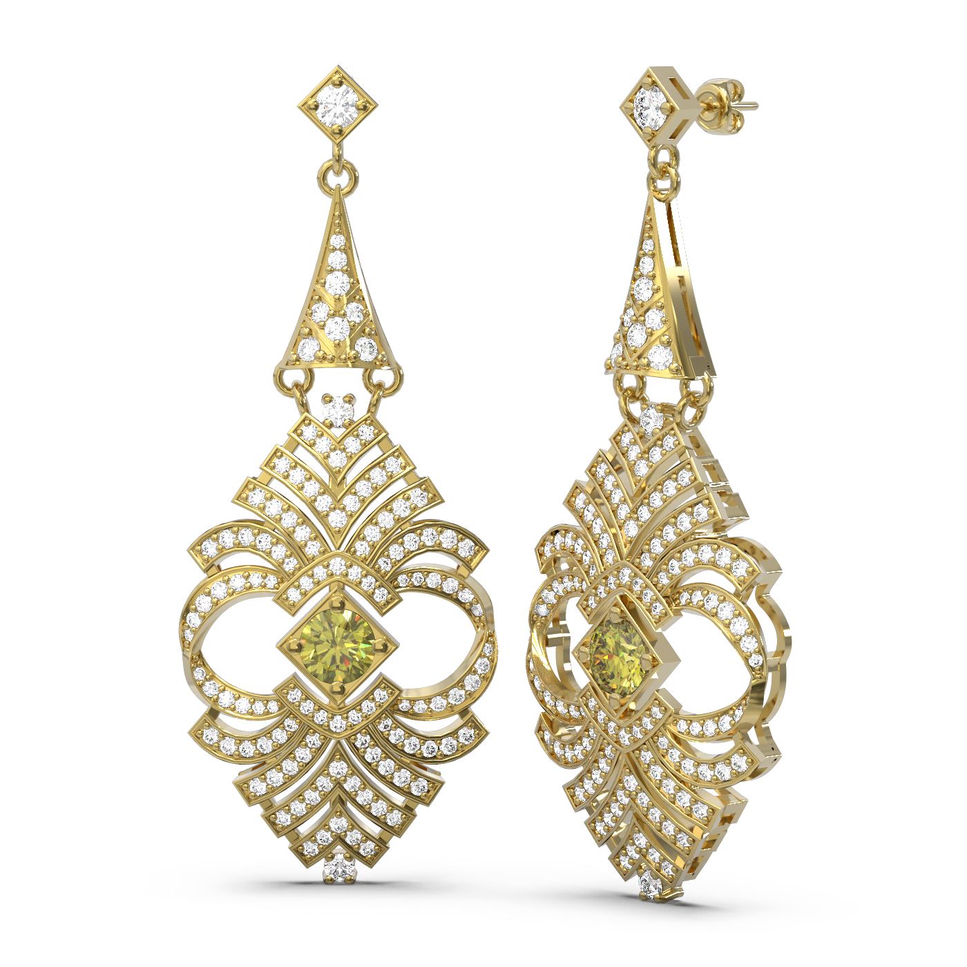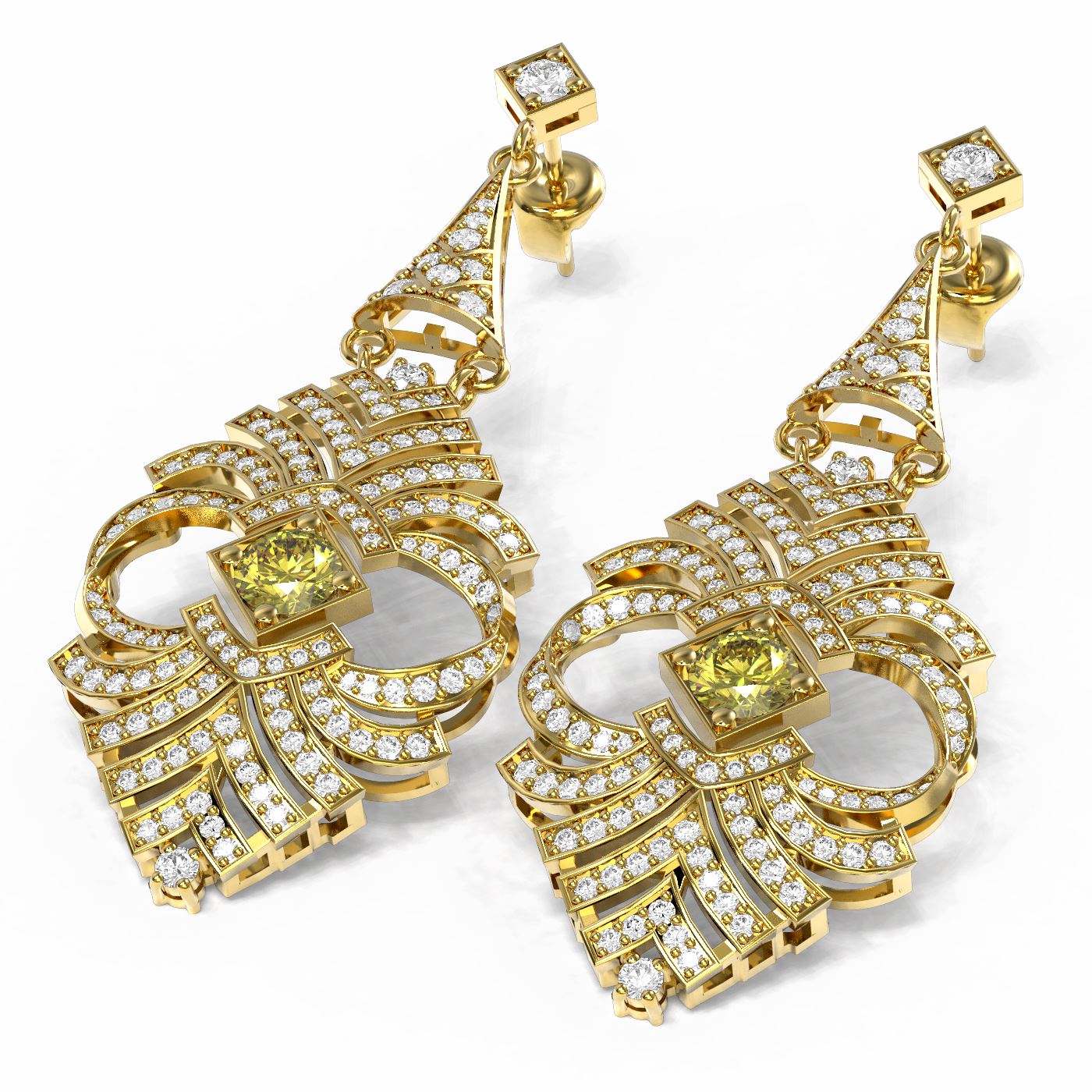 REF-718G2W - SKU: 57709 ---- 6.56 ctw Fancy Yellow Diamond Earrings 18K Yellow Gold