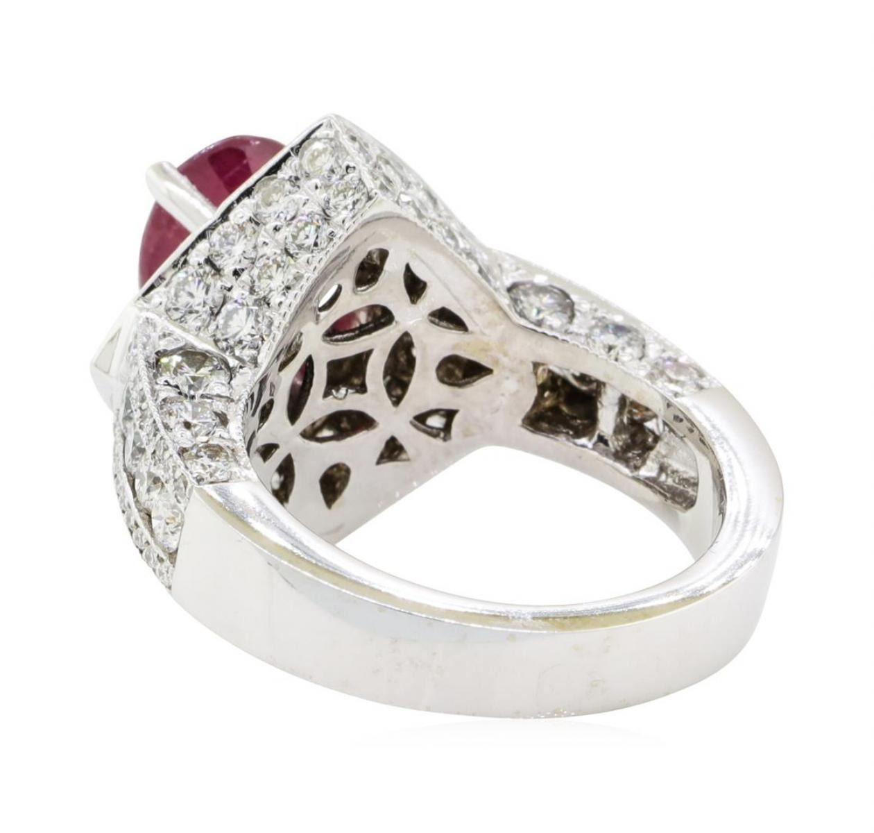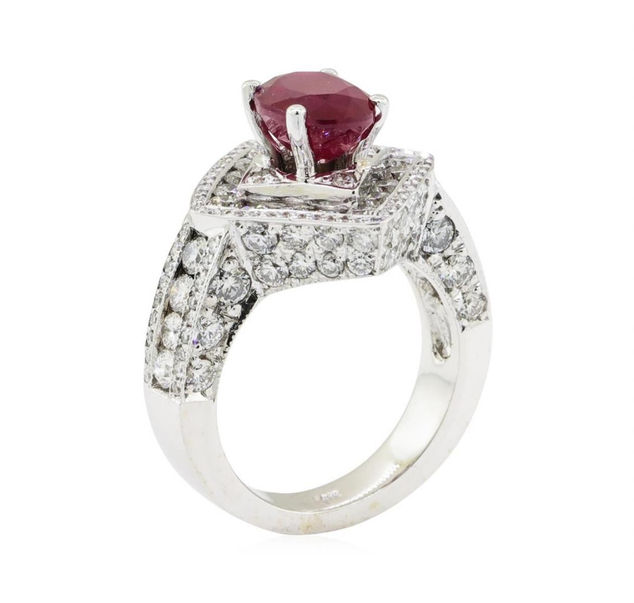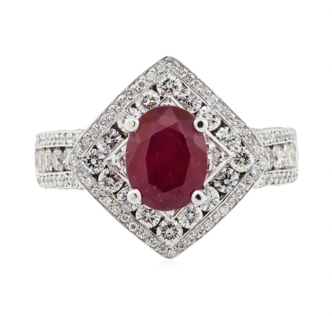 One electronically tested 14KT white gold lady's cast fashion ring with a cathedral shank with a bright polish with milgrain detailing finish. The featured lady's ring has a square cushion halo with diamond set shoulders and a shank measuring 3.90 millime