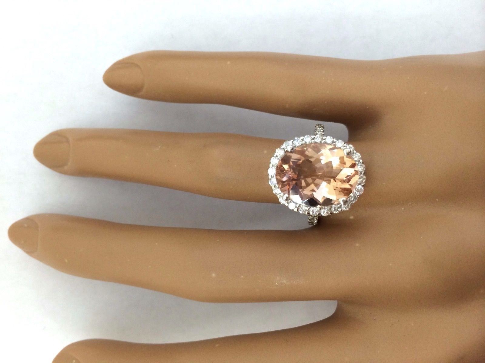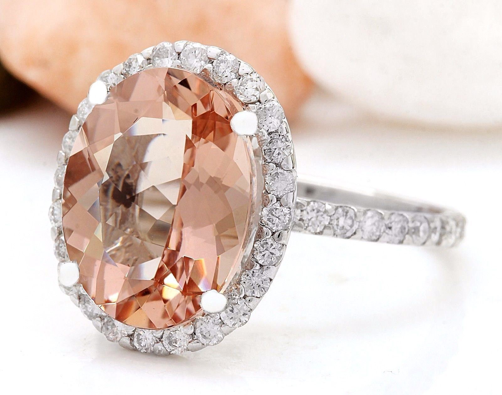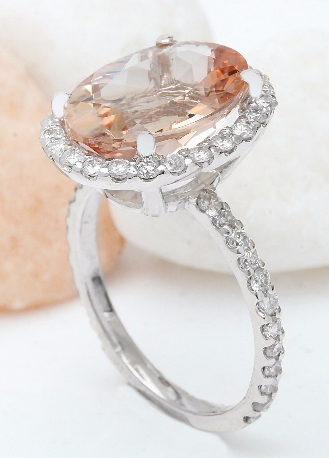 6.57 Carat Natural Morganite 14K Solid White Gold Diamond Ring