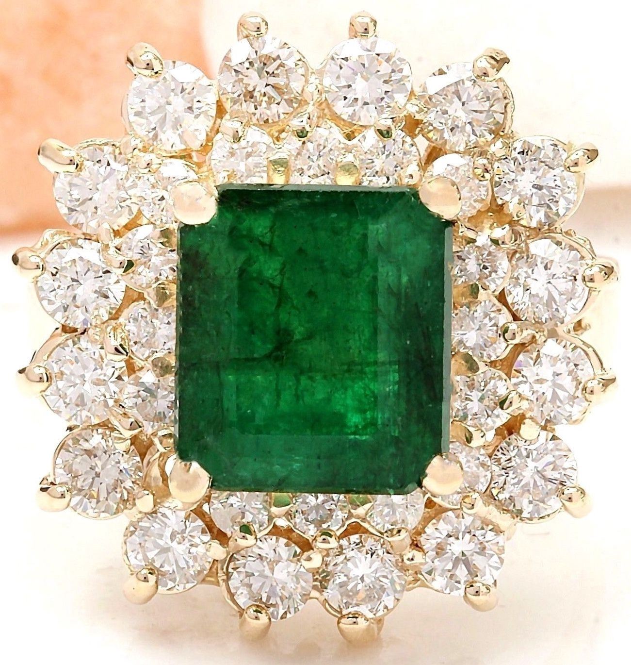 6.58 Carat Natural Emerald 18K Solid Yellow Gold Diamond Ring