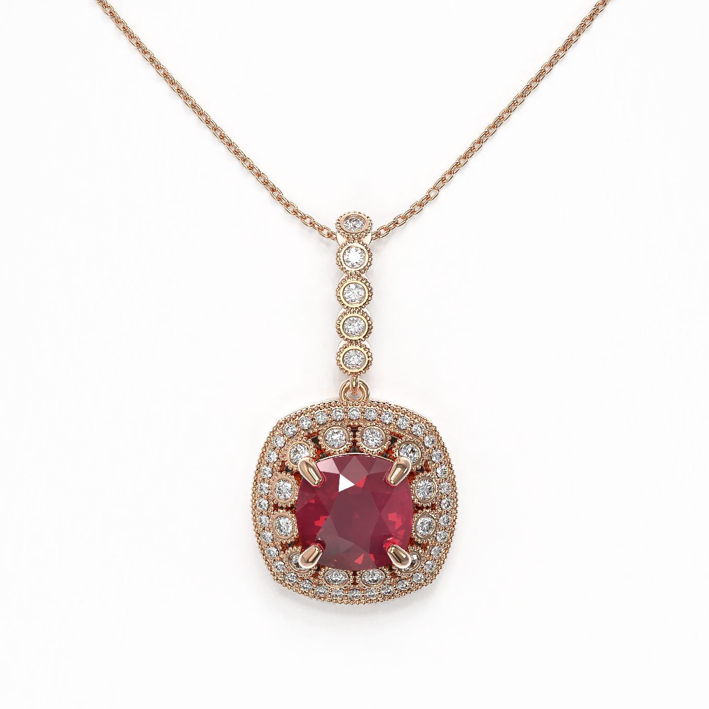 REF-209M3G - SKU: 44004 ---- 6.58 ctw Certified Ruby & Diamond Victorian Necklace 14K Rose Gold