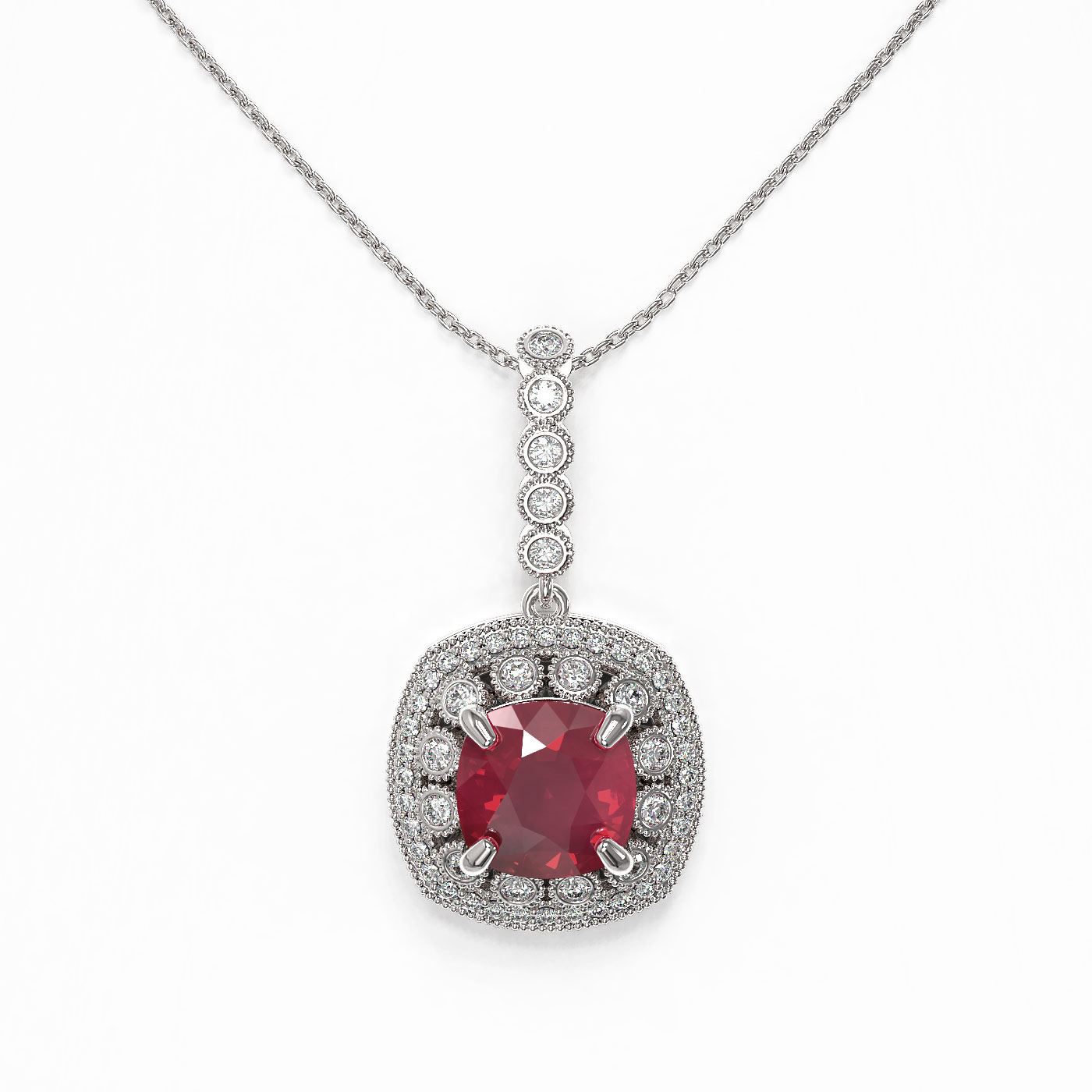 REF-209N3F - SKU: 44003 ---- 6.58 ctw Certified Ruby & Diamond Victorian Necklace 14K White Gold