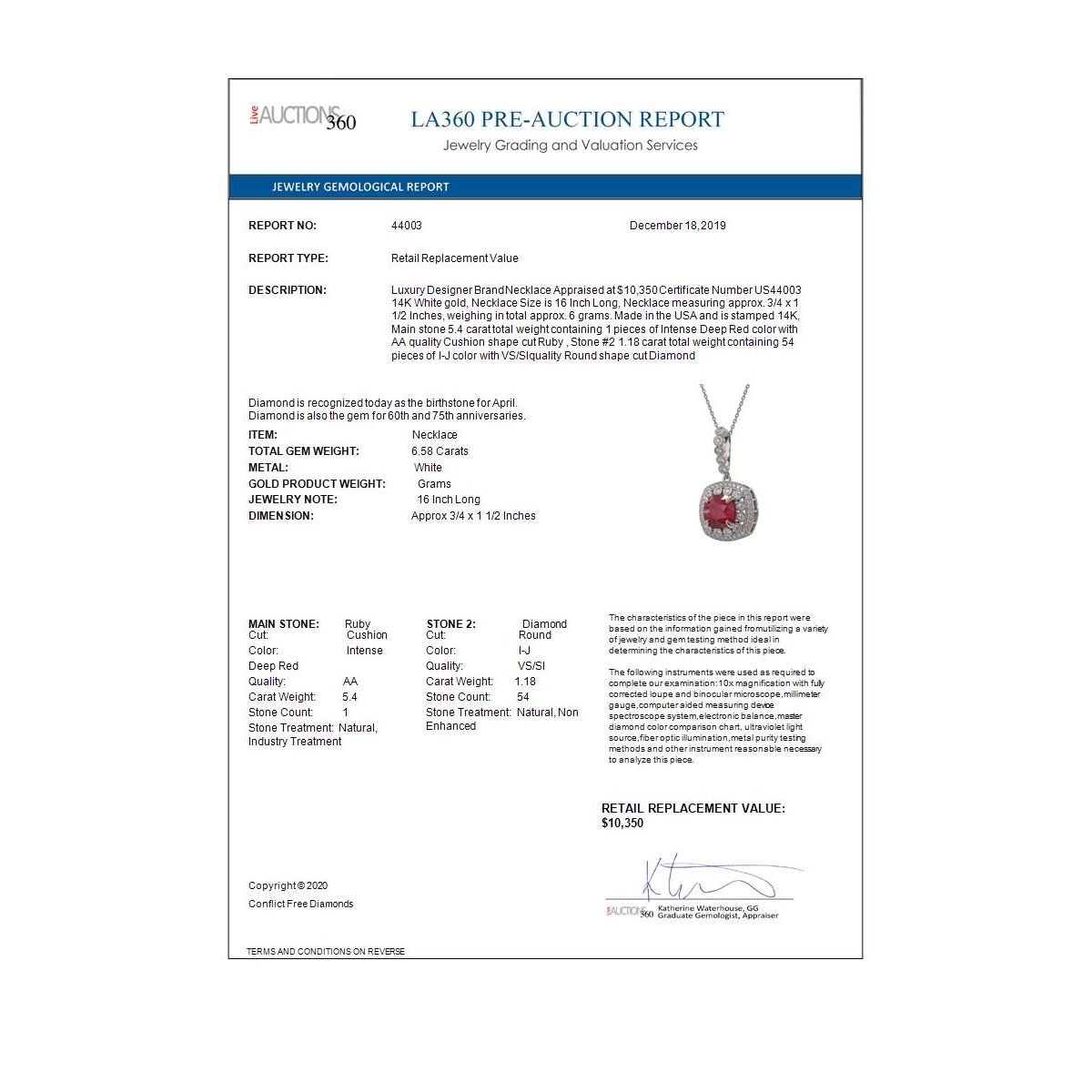 All sales are final, placing a bid is a legally binding obligation. All lots are sold as is, where is, with all the faults, imperfections, omissions and errors in the written description, estimates, appraisals, graphics and photography. USJL is not responsible for any errors or omissions in the description, graphics or photography provided or in the bidding software. Due diligence to verify the condition and description of a lot is the sole responsibility of the Bidder prior to placing any bid. Returns may only be made with the advance written authorization of USJL and are in USJL's sole discretion to approve. To request a return you must provide a written request fully explaining the basis for the return no later than 4 days after your receipt of the lot. Under no circumstances will any amounts other than the winning bid amount be refunded. A restocking charge of 19% of the full invoice amount may apply in USJL 's sole discretion. Any allowed returns must be received in exactly the same condition as when originally shipped to Buyer, or they will be returned to buyer at Buyer's cost. Any unauthorized returns will be refused. DELIVERY REFUSAL OF ITEMS SHIPPED BY US JEWELRY LIQUIDATION TO THE BIDDER CONSTITUTES AN UNAUTHORIZED RETURN IN DIRECT VIOLATION OF THESE GENERAL TERMS AND CONDITIONS.