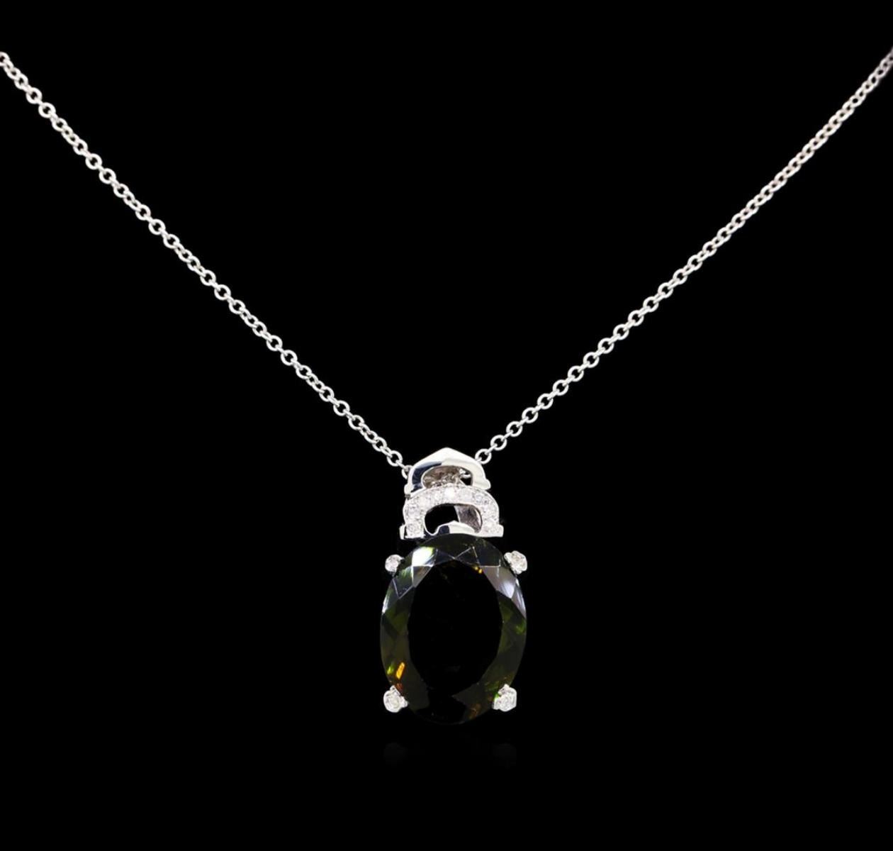 One pendant with chain featuring: 14KT white gold weighing 2.31 grams containing one tourmaline weighing 6.58ct and diamonds weighing 0.07ctw.