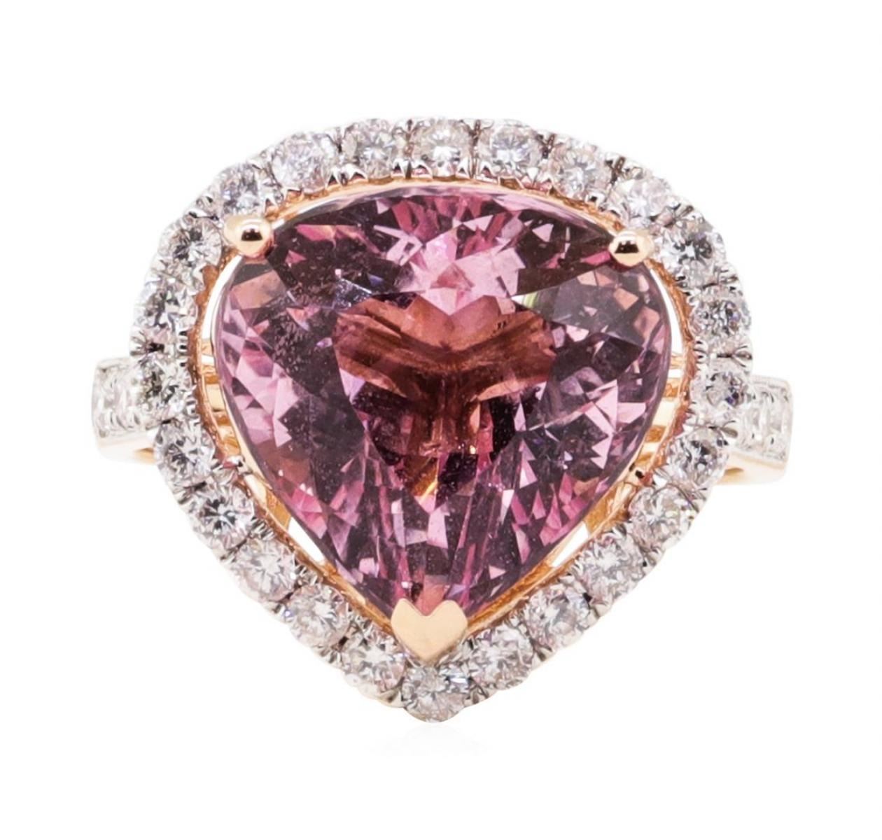 One 6.61ct Morganite and Diamond ring - 14KT Rose Gold. AIG certified. See Appraisal for more details. AIG Appraised.