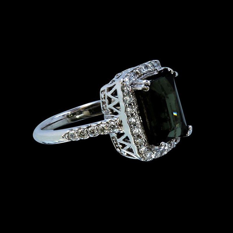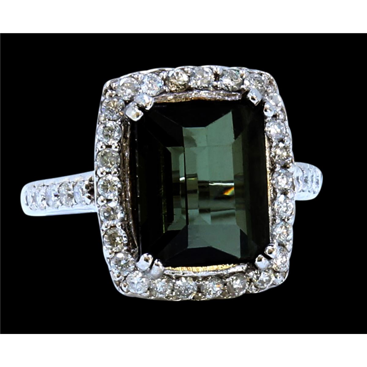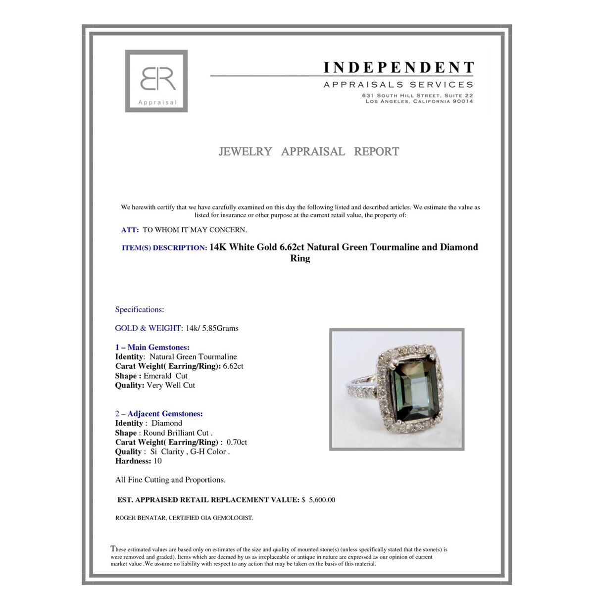 14K WHITE GOLD NATURAL COPPER BEARING GREEN PARAIBA TOURMALINE RING:5.85GRAM /GREEN TOURMALINE: 6.62CT/ DIAMOND: 0.70CT/#GVR1241