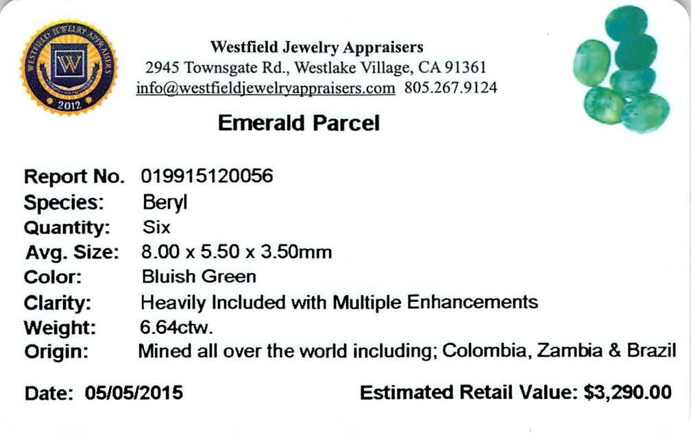 One 6.64 ctw Oval Mixed Emerald Parcel.