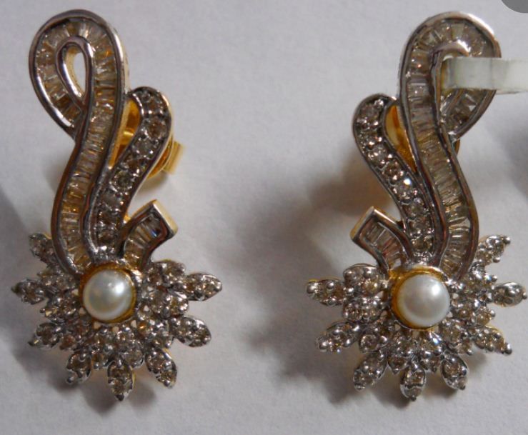 Earring of total weight 6.641g in 14kt 6.295g Gold ,Diamond:1.33 Ctw and Pearl:0.40 Ctw