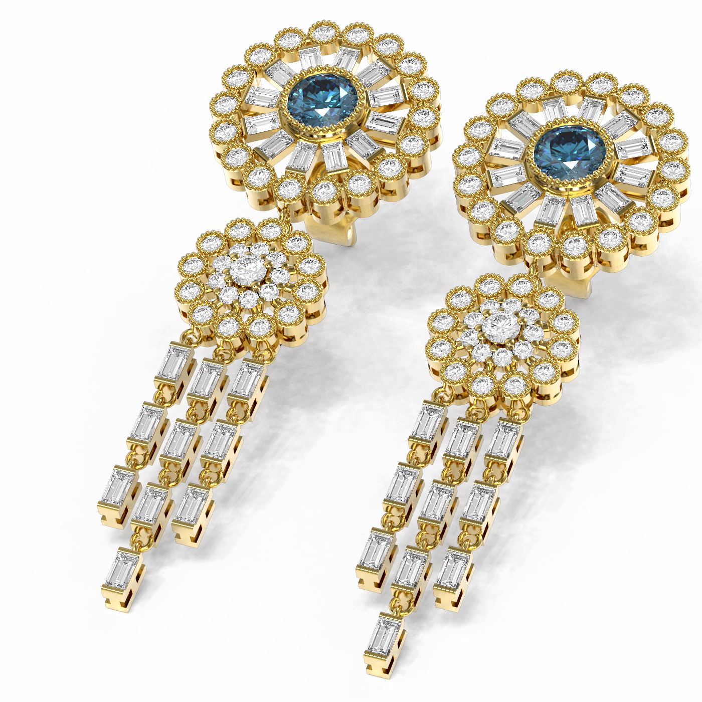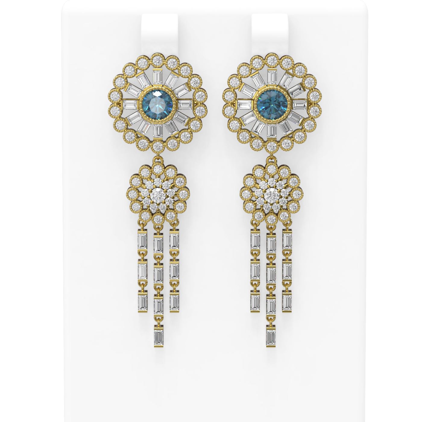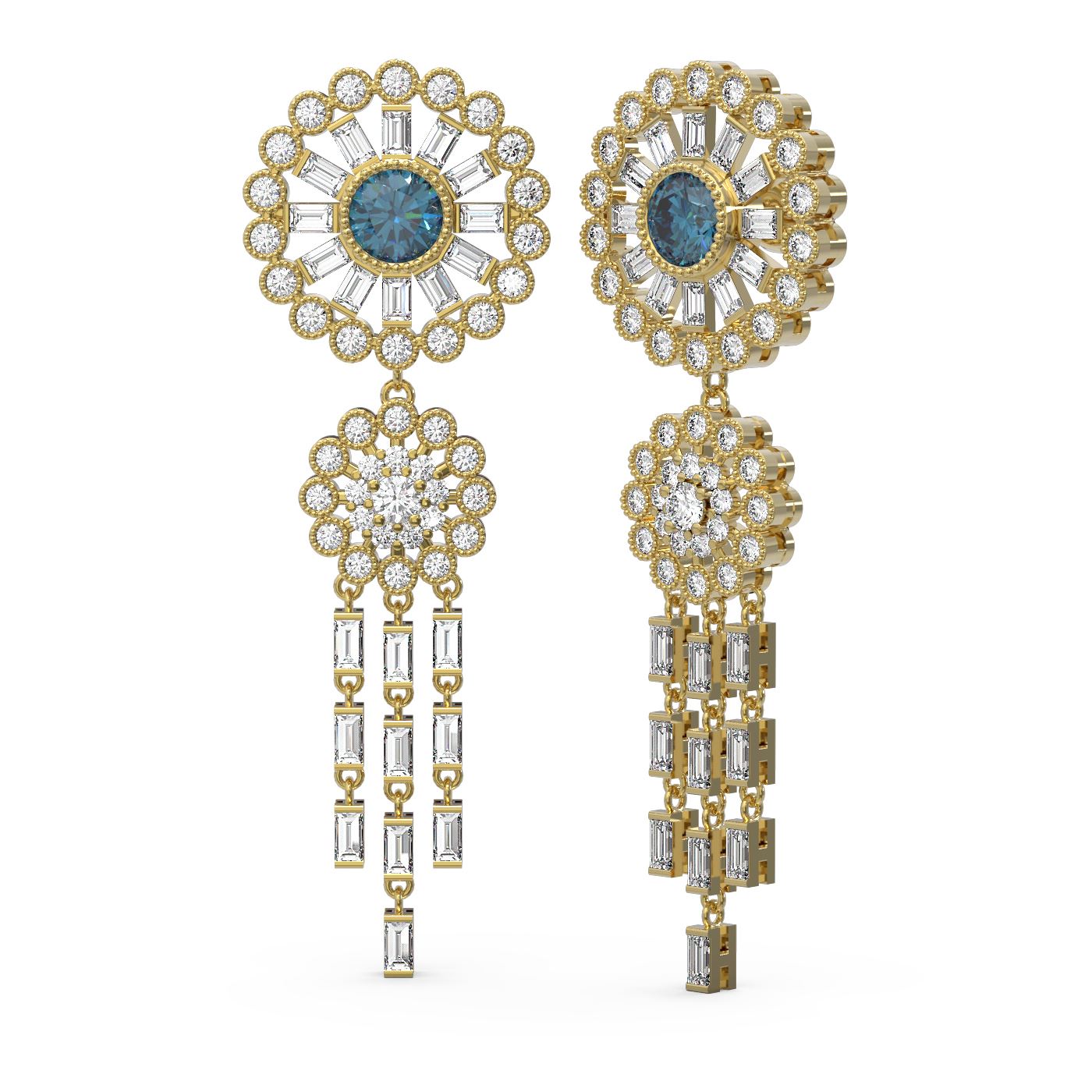 REF-659W6H - SKU: 61690 ---- 6.65 ctw Intense Blue Diamond Earrings 18K Yellow Gold